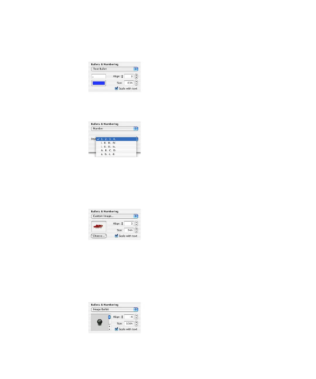 To change the image used as a bullet, drag the new image from the Finder to the image well