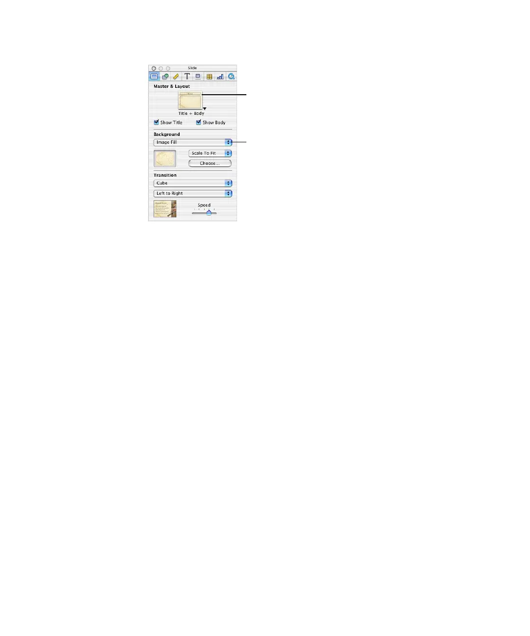 Master & Layout pop-up menu in the Slide Inspector.
