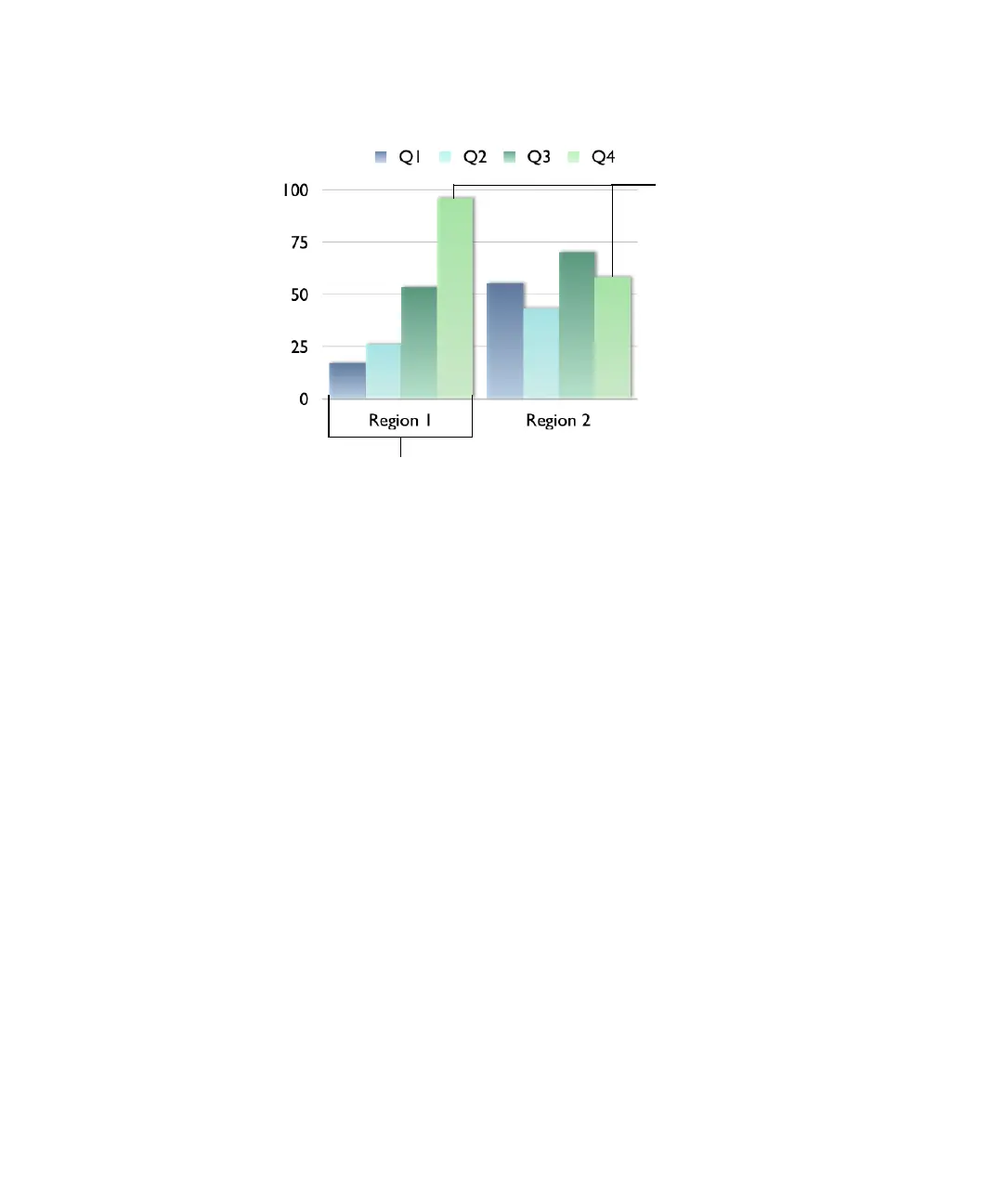 In column charts and bar charts, a data series is represented by a series of bars in the same
