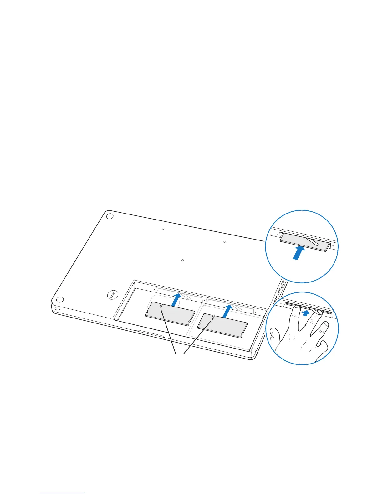 b Use two fingers with firm, even pressure to push in the memory modules.