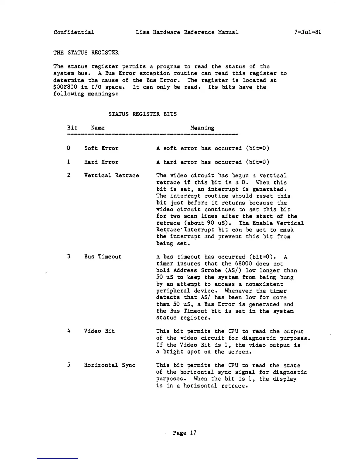 Apple Lisa - Status Register