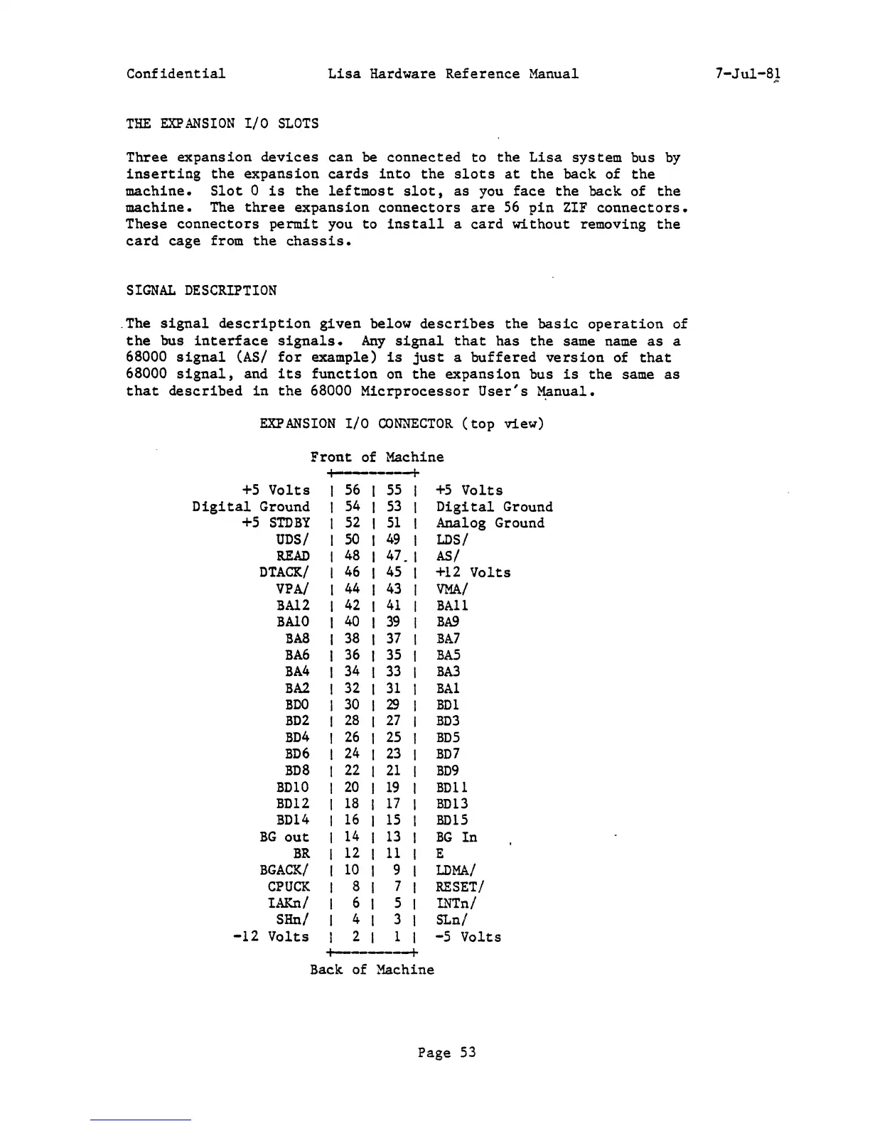 Apple Lisa - The Expansion I;O Slots; Signal Description