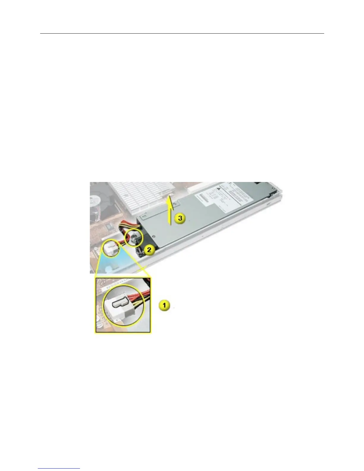 3. Grasp the metal flange of the power supply’s connector (on the left side) and lift up to