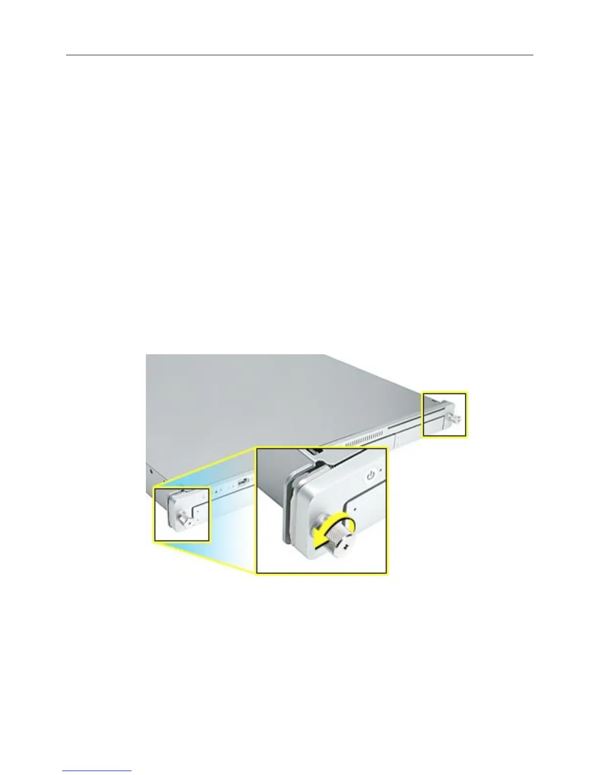 3. If the server is in the locked position (the yellow security LED on the front panel is on),