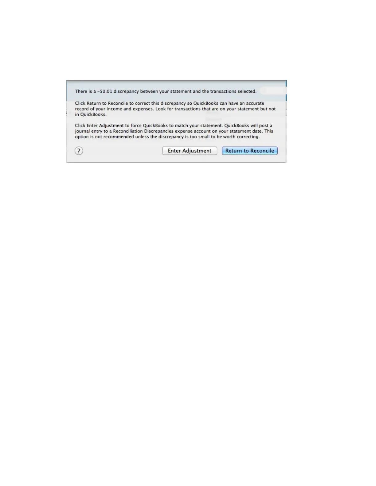 end of the next reconciliation. Delete the QuickBooks balance adjustment transaction when you reconcile the next