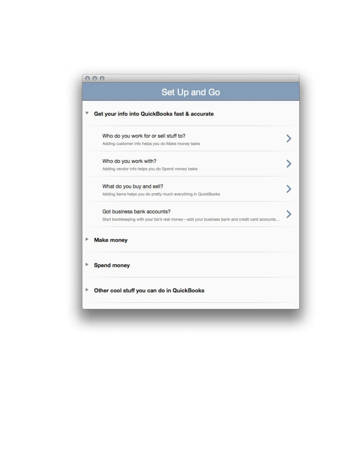 a look at QuickBooks features that may be new to you. This is what the Set Up and Go checklist includes when you