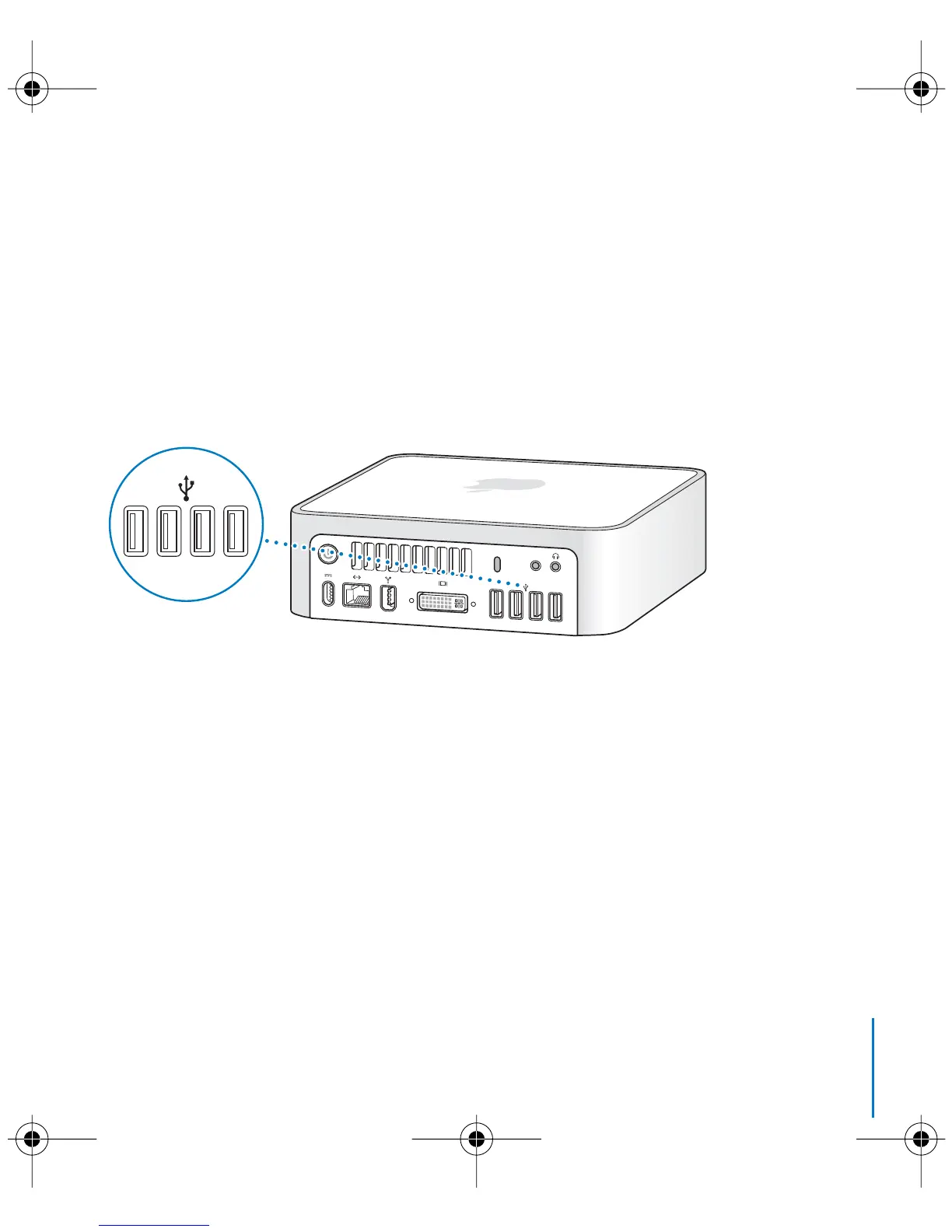 Your Mac mini comes with four USB 2.0 (d) ports, which you can use to connect many
