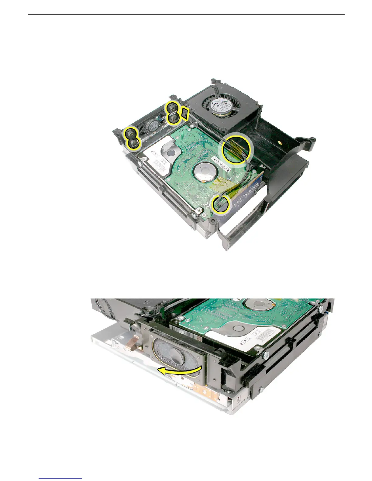 1. Using a jeweler’s #1 Phillips screwdriver, remove four screws, free the speaker cable