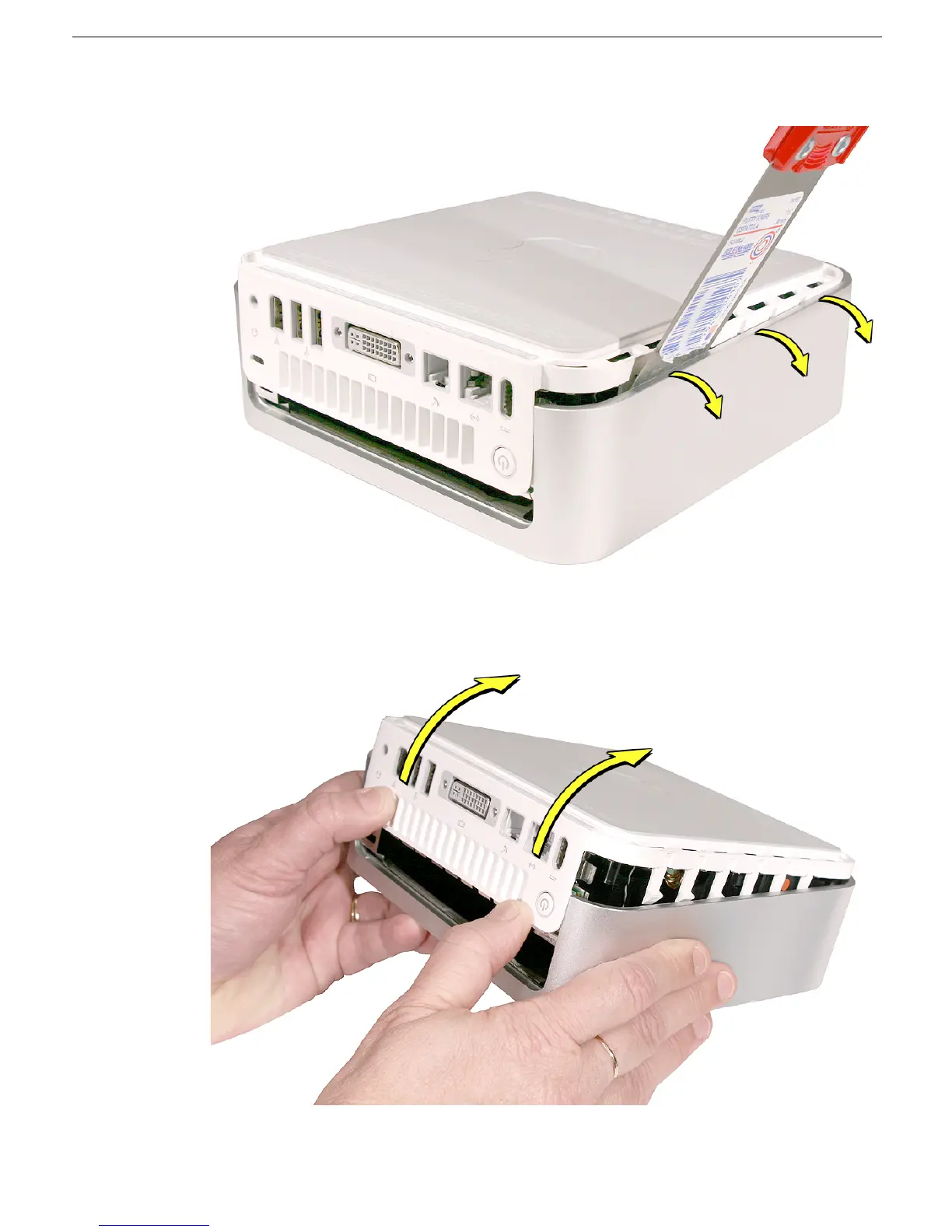 11. Push the I/O panel upward until the top housing is removed. The popping sounds will