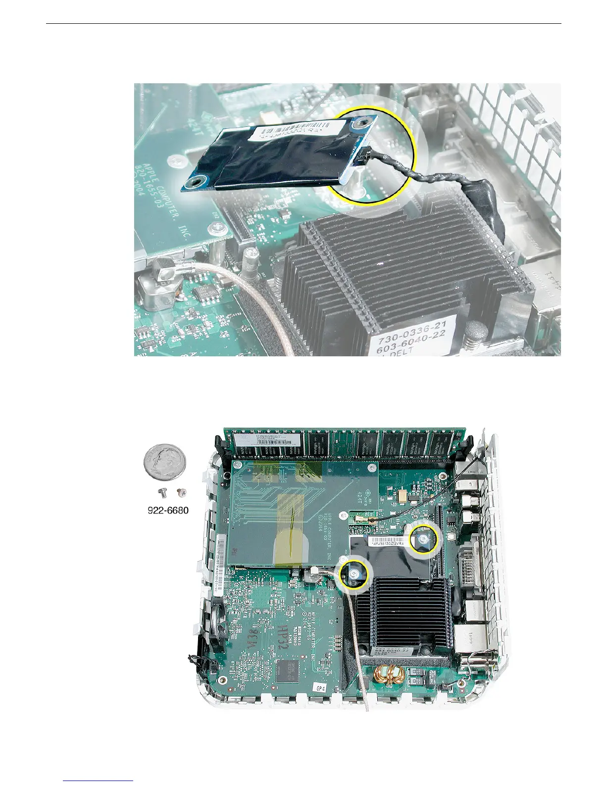 8. Connect the modem to the modem connector on the logic board, and install the two
