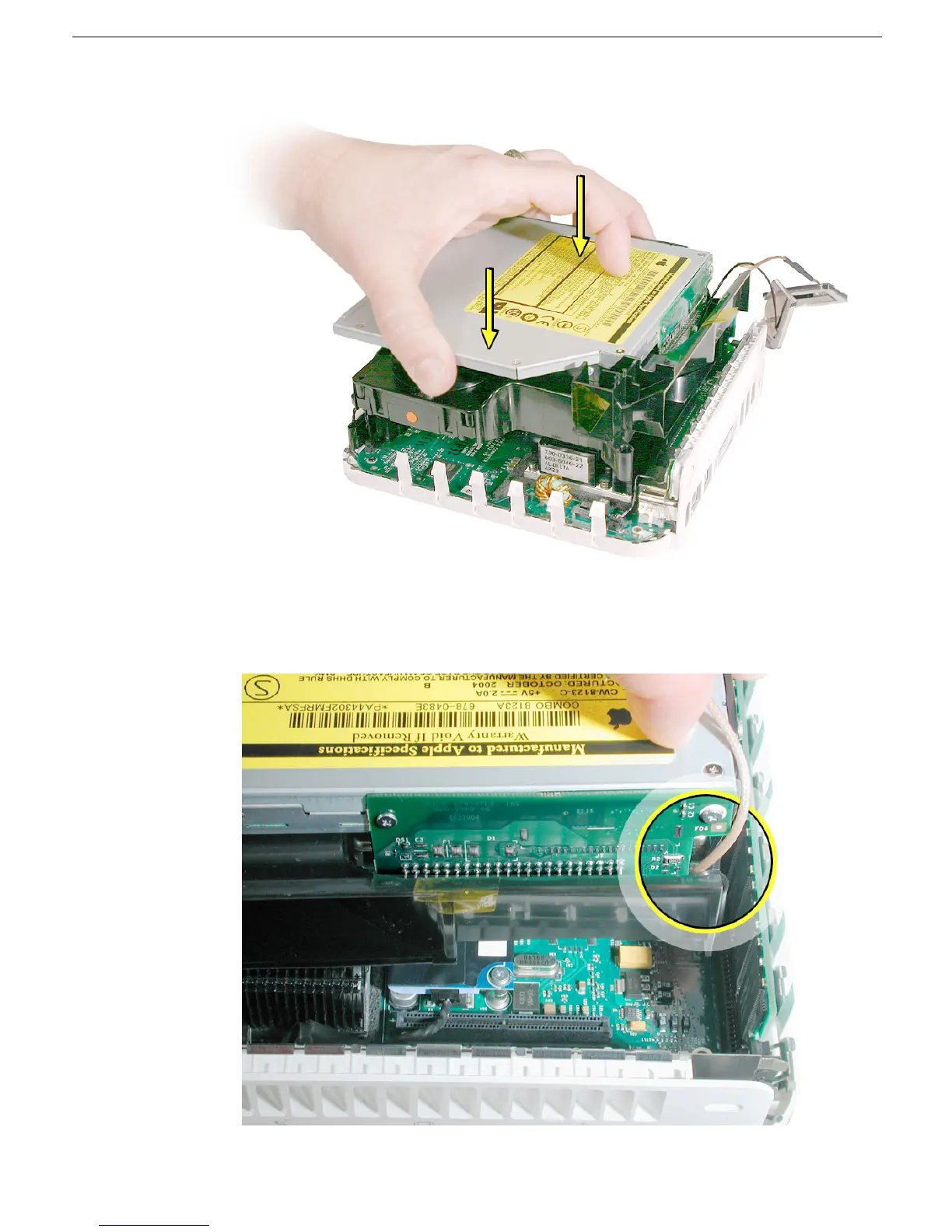 frame as you lower the internal frame onto the logic board.Note: Be careful not to