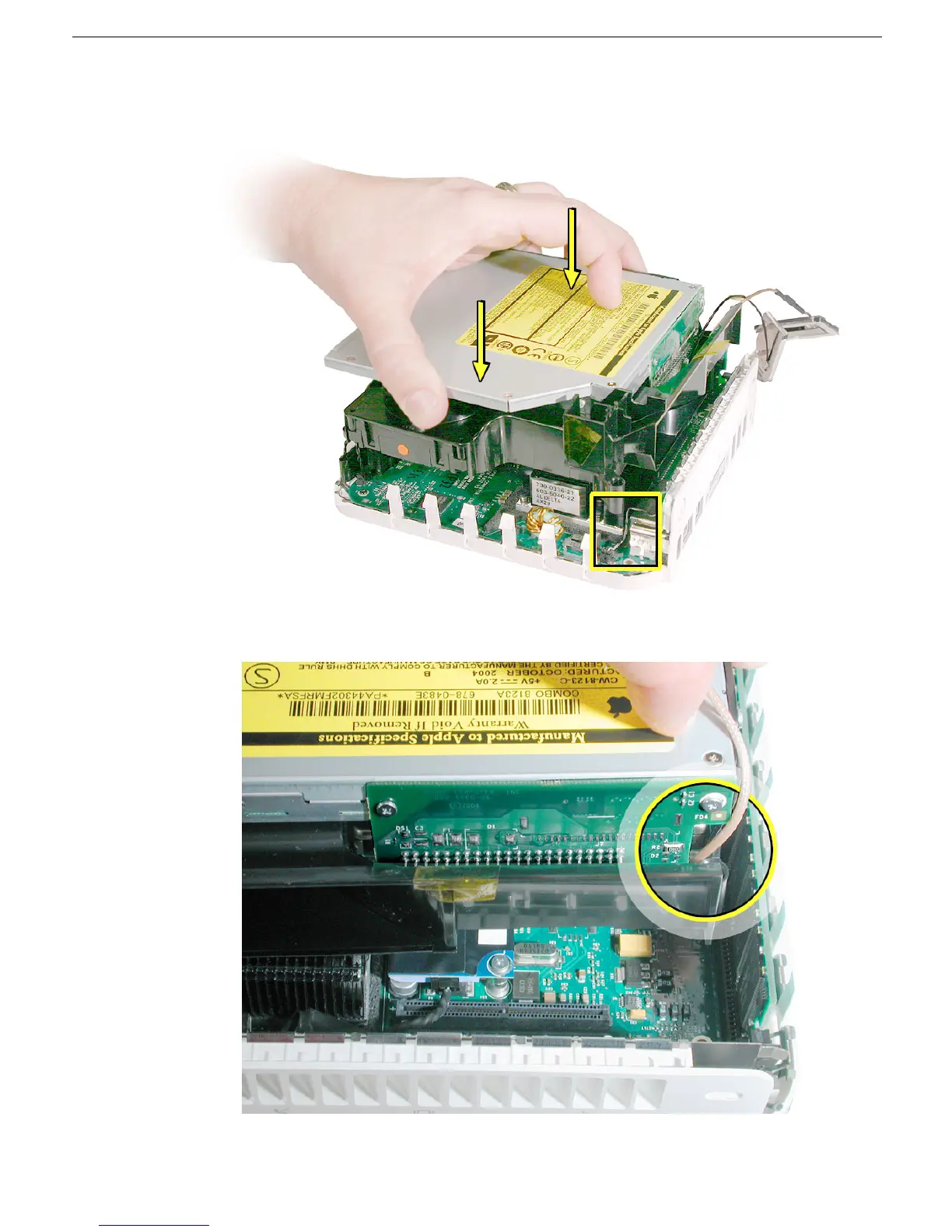 13. Lower the internal frame into place. Note: Route the power button cable out of the way