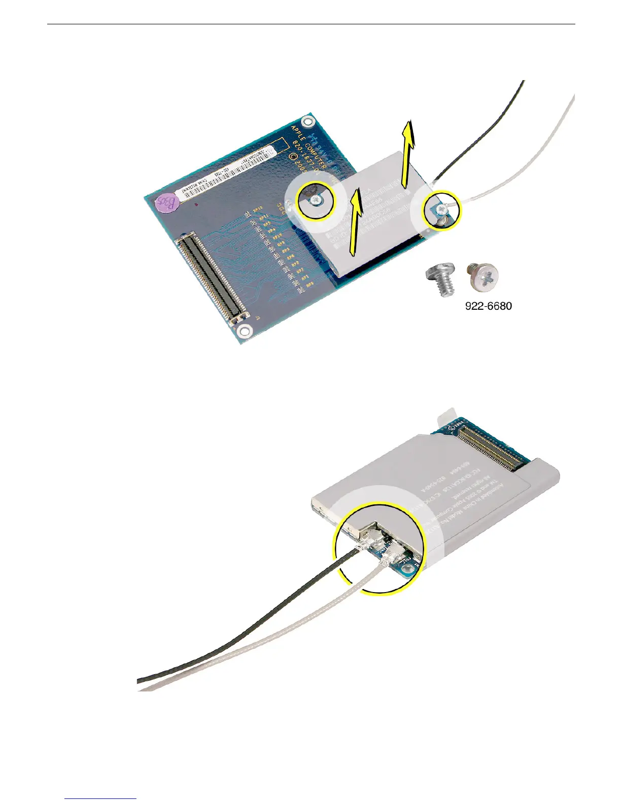 Antennas, Mezzanine Board, AirPort Extreme/Bluetooth Card