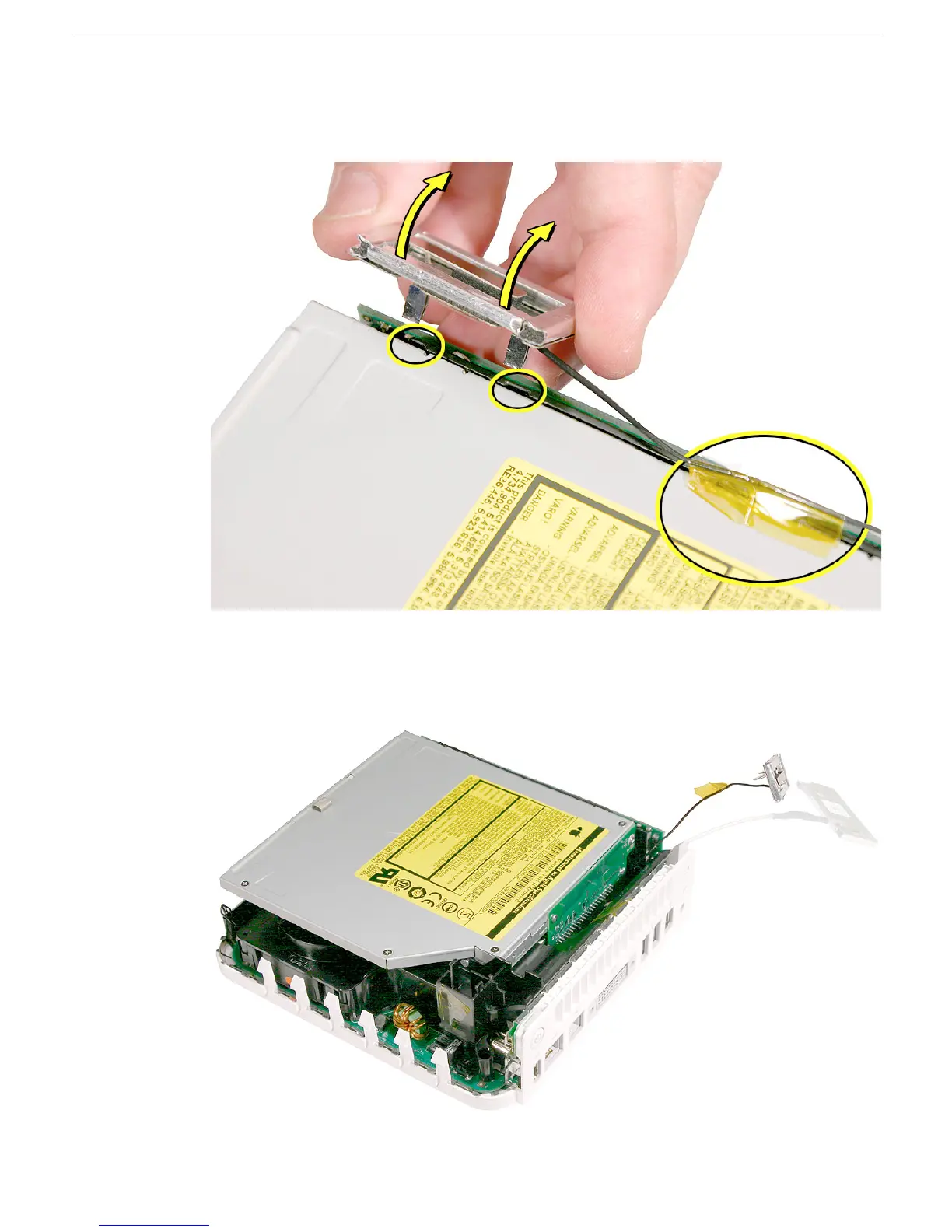 3. Pull the Bluetooth antenna up and out of the openings on the plastic rail. Free the