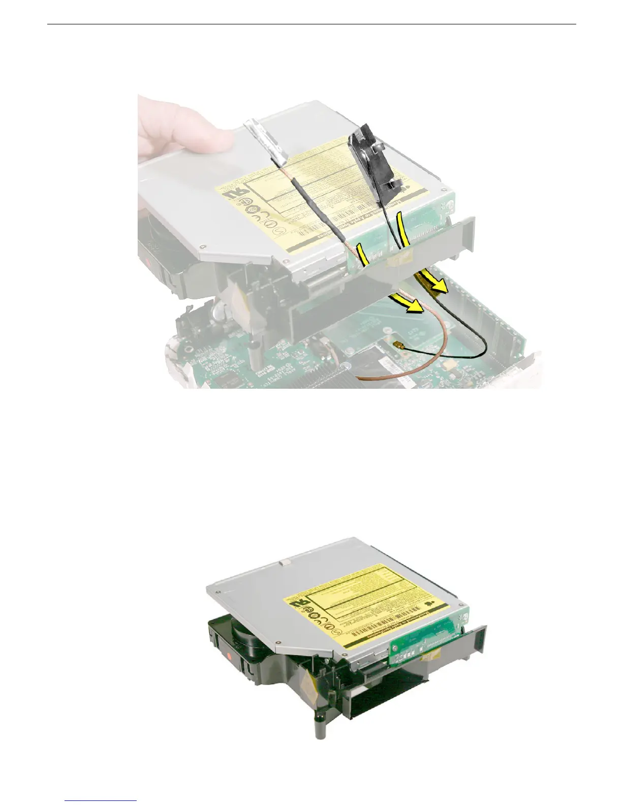 11. Gently guide the Bluetooth and Airport antenna cables down through the opening in