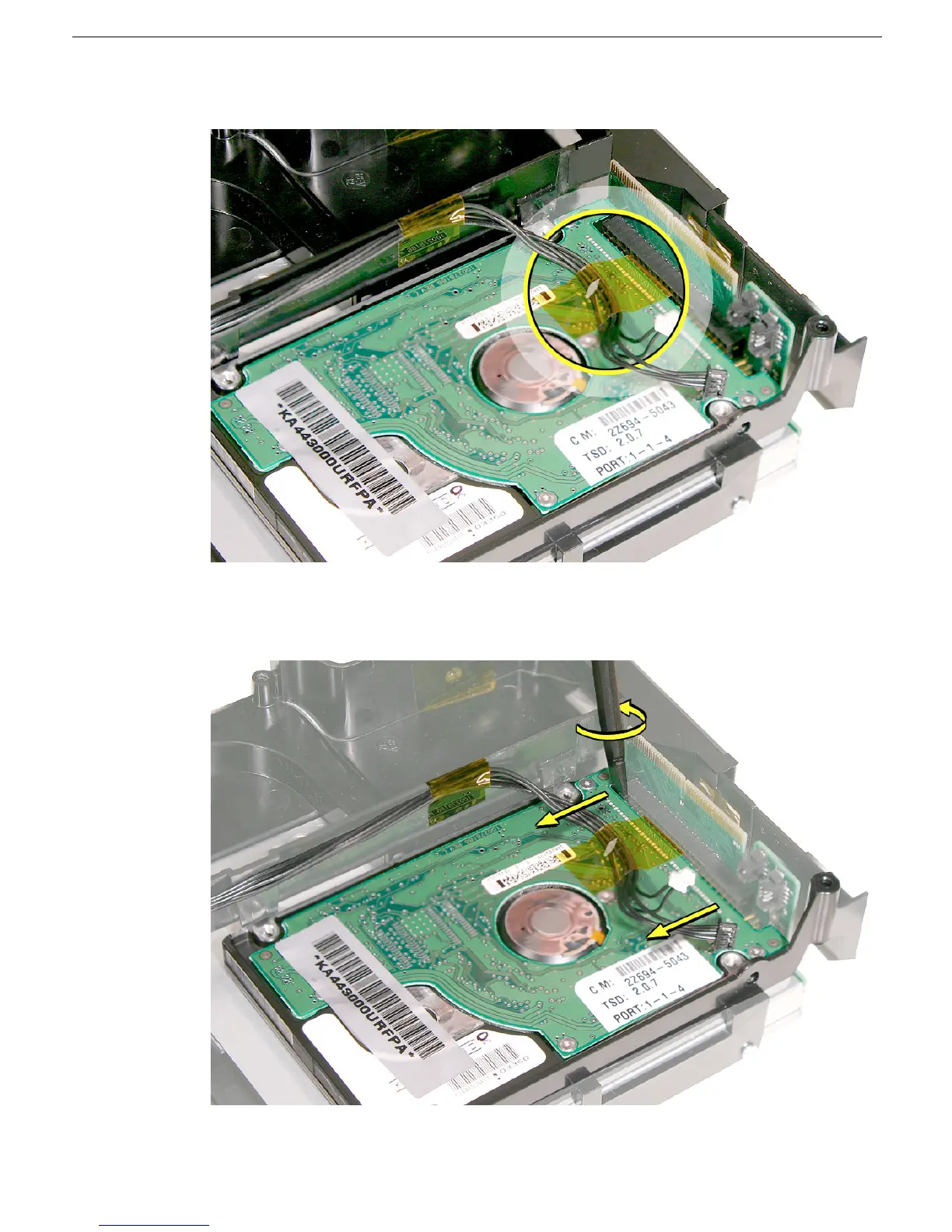6. WIth a black stick or other nonconductive tool, pry the hard drive off the connector on