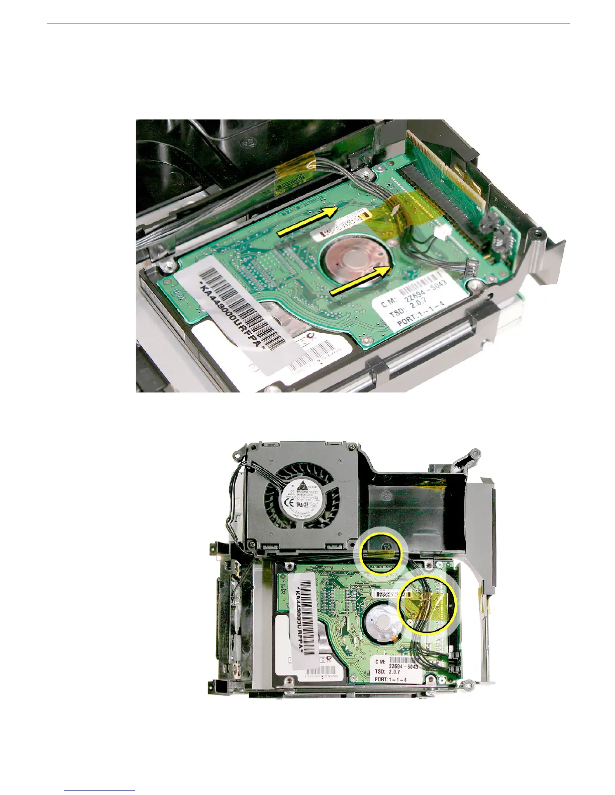 1. WIth the colored side of the hard drive face up, place the hard drive into the internal