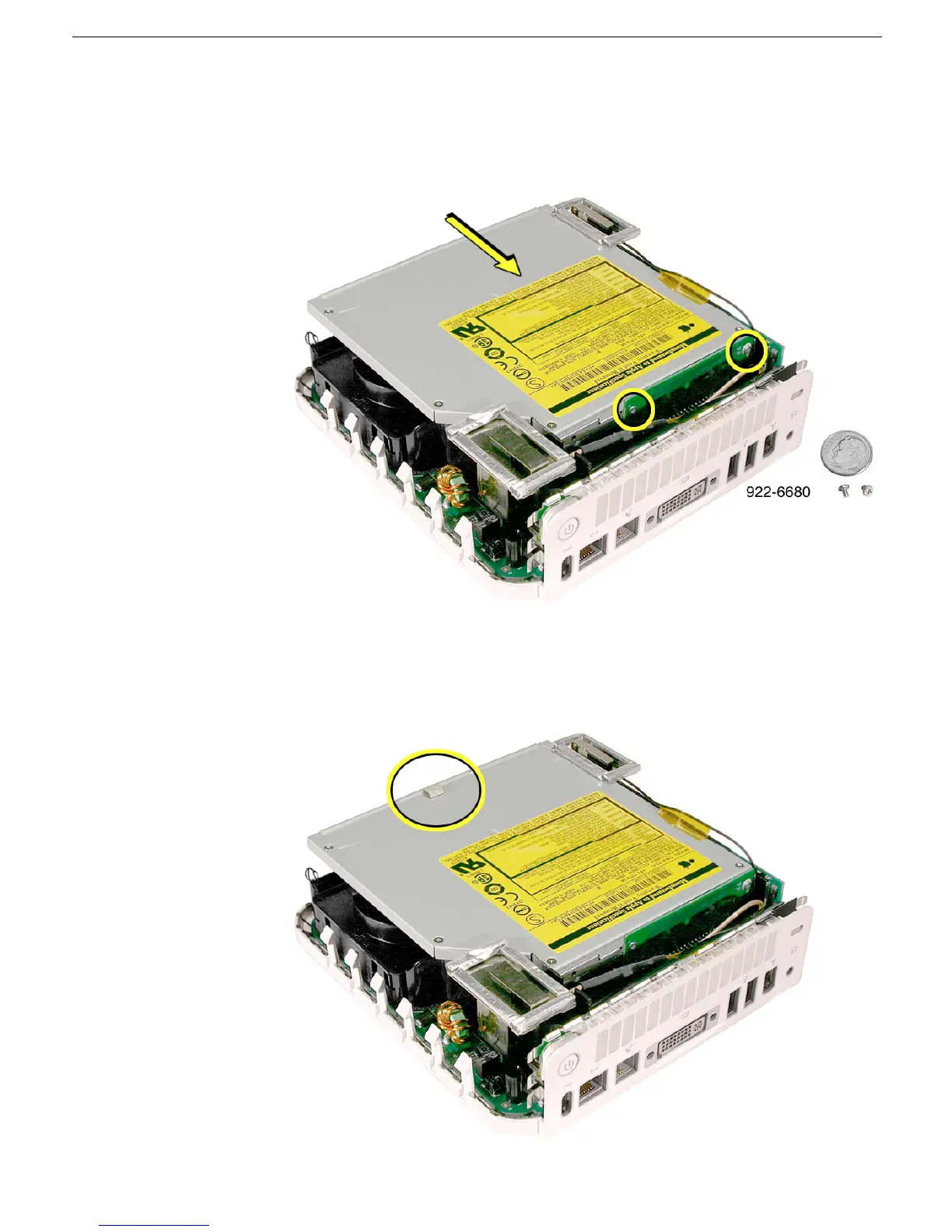 1. Connect the optical drive to the interconnect board and replace the two interconnect