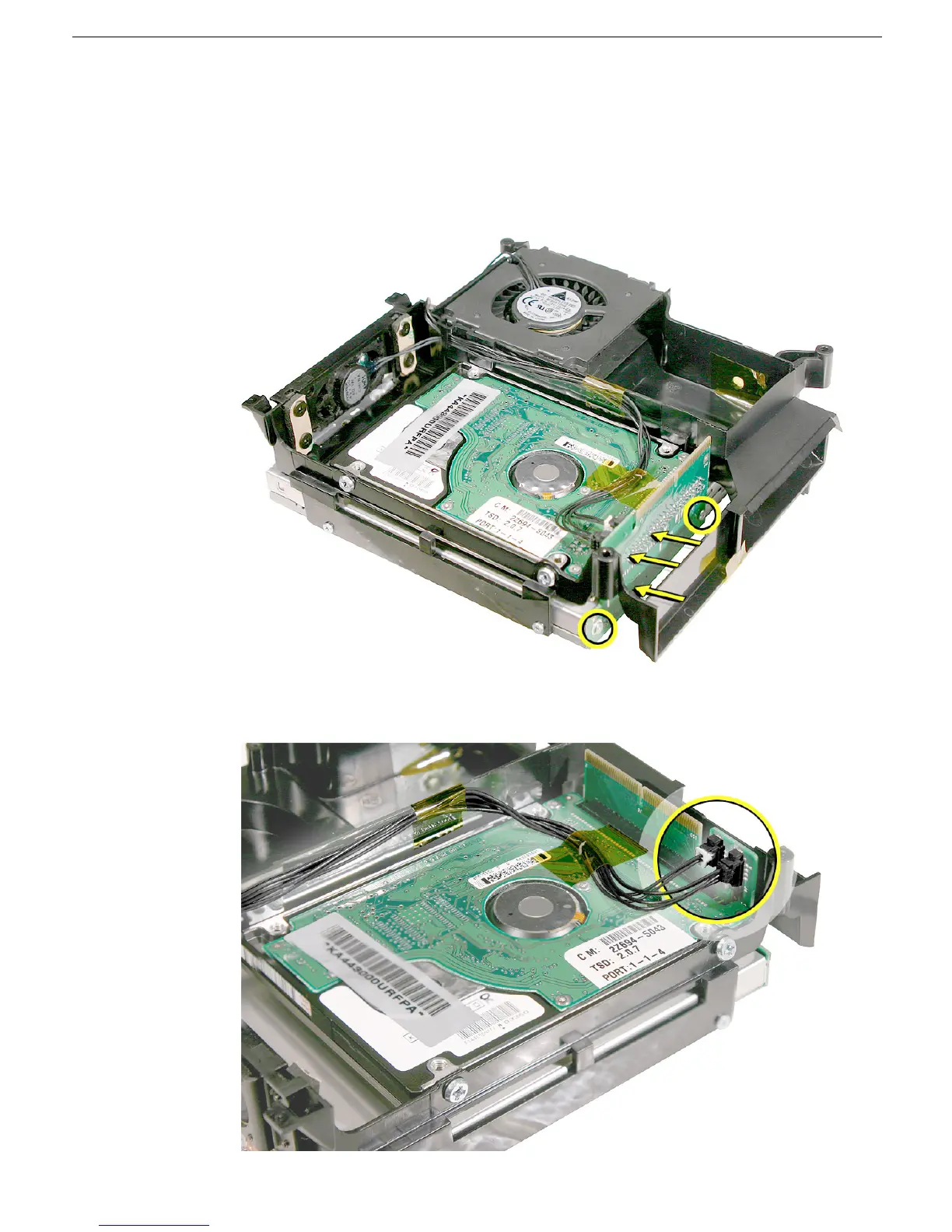 (circled). Caution: Be careful not to bend the hard drive pins when connecting the