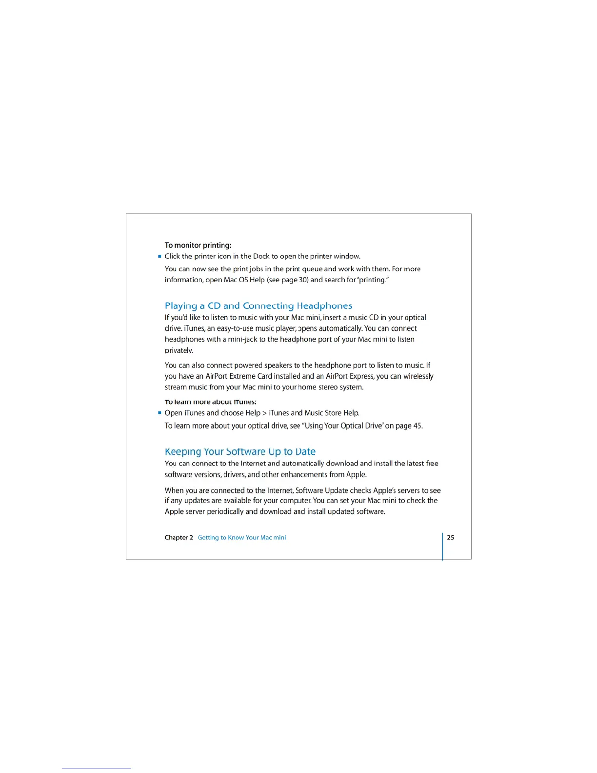 Apple Mac mini - Playing a CD and Connecting Headphones; Keeping Your Software Up to Date