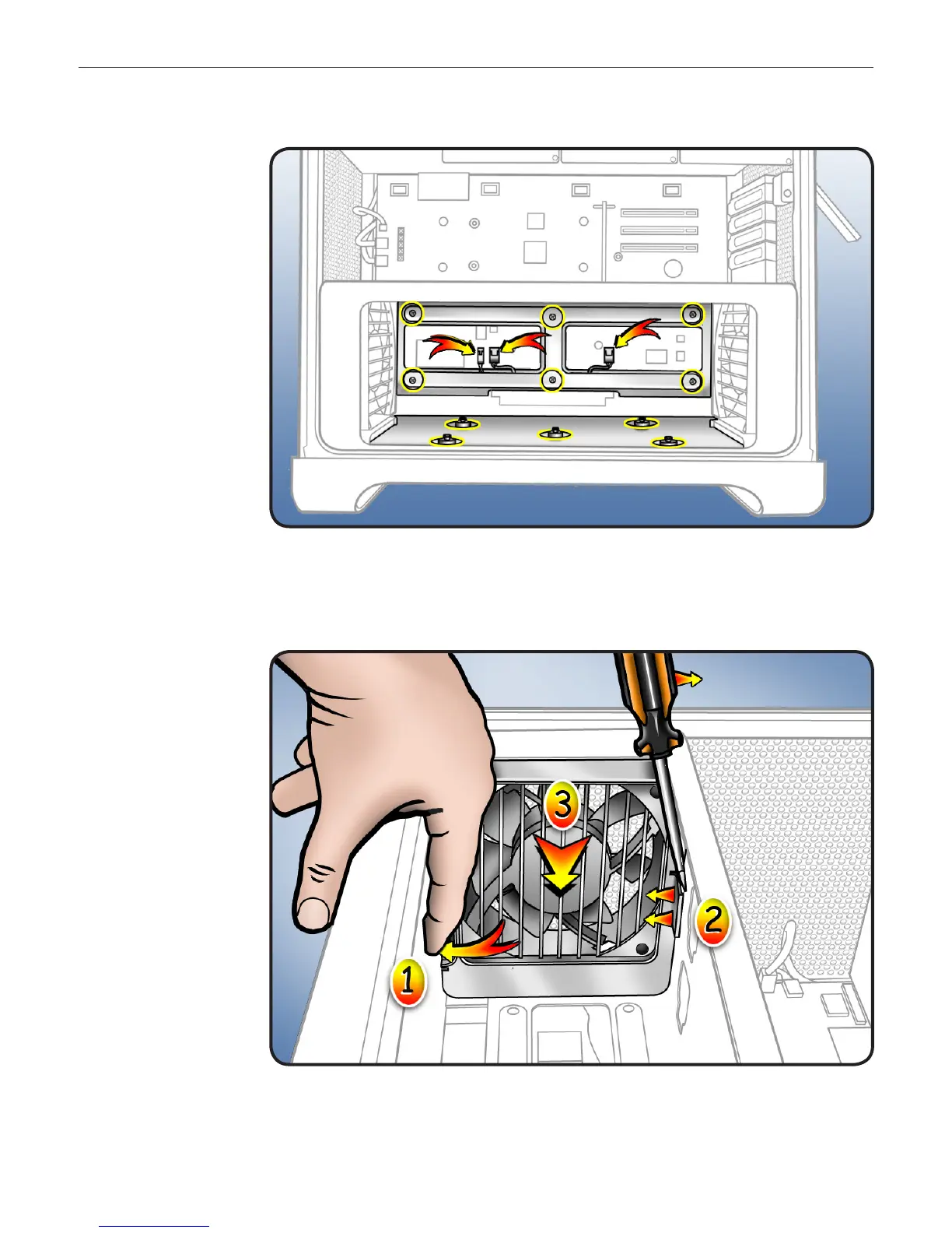 enclosure, you must release 2 latches on each fan and push fans partway into cage.