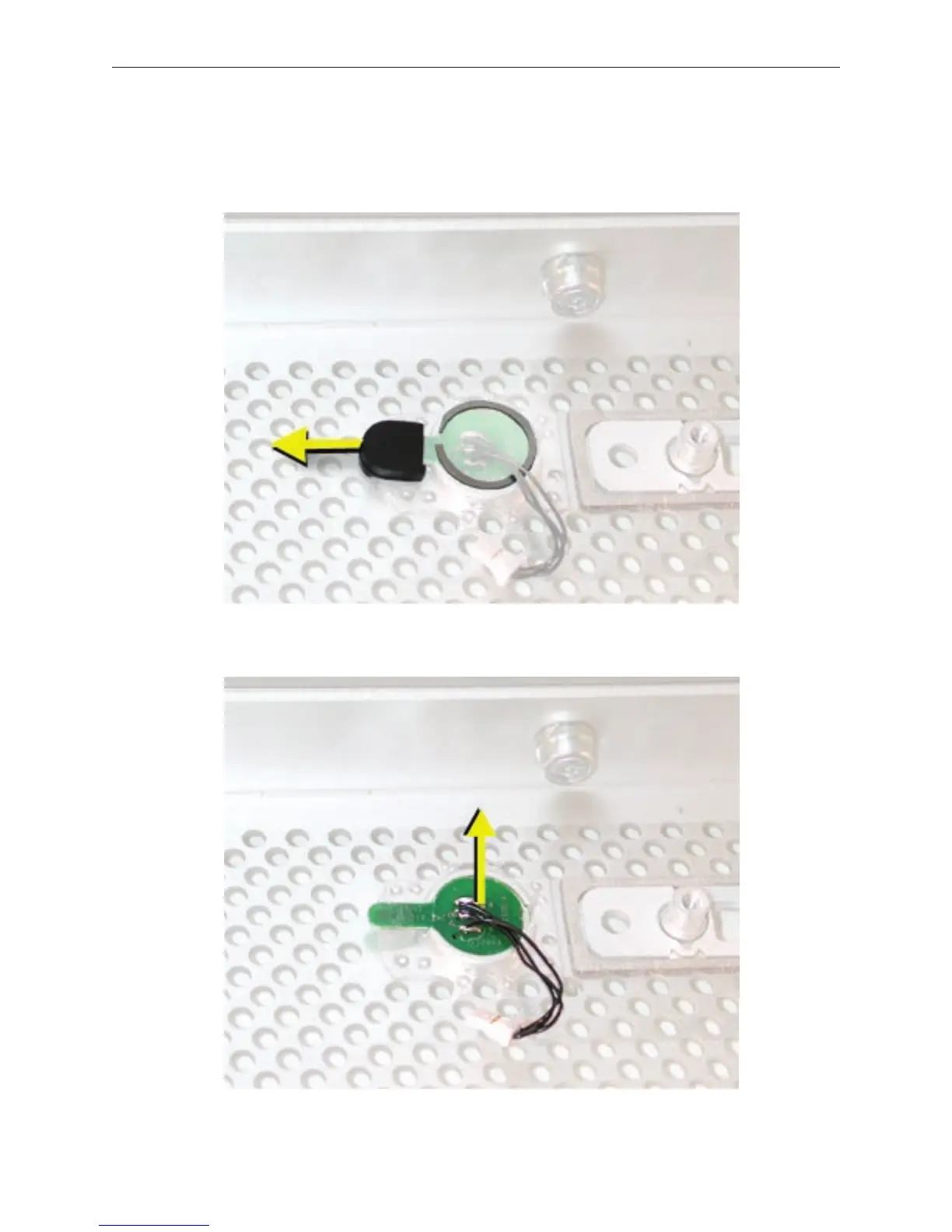 Lift up and remove the power button board. 7.