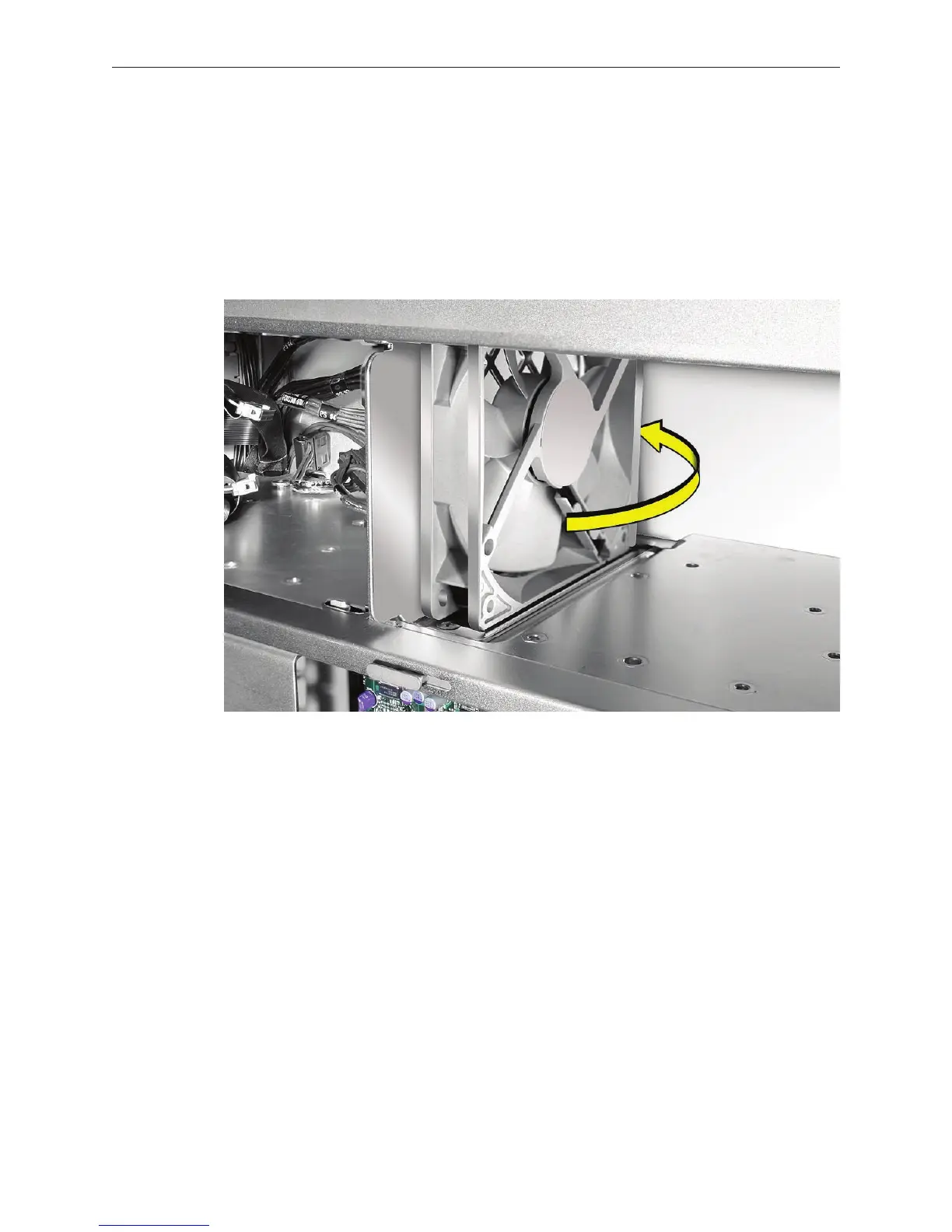 Rotate the fan into place ush against the media shelf divider. Make sure the back of the fan 3.