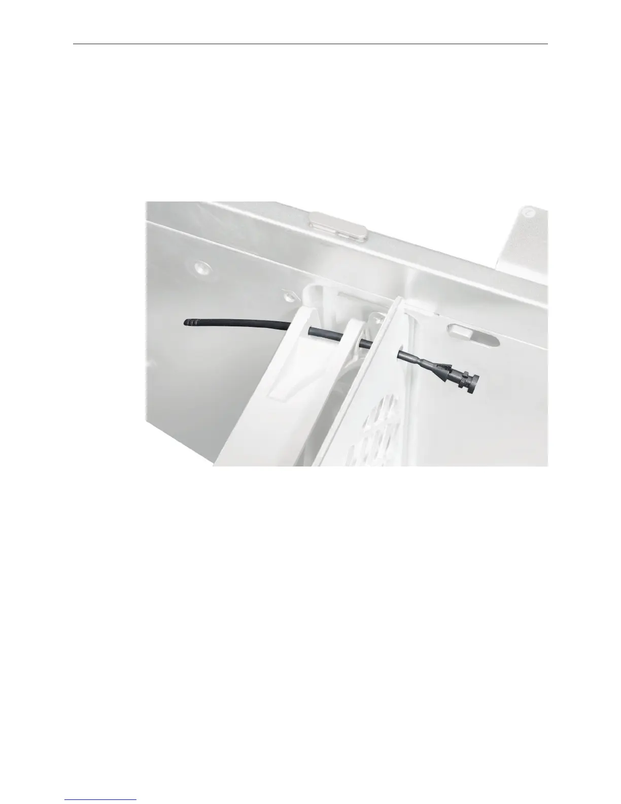 and on through the corresponding grommet hole in the fan bracket. Then pull to secure the
