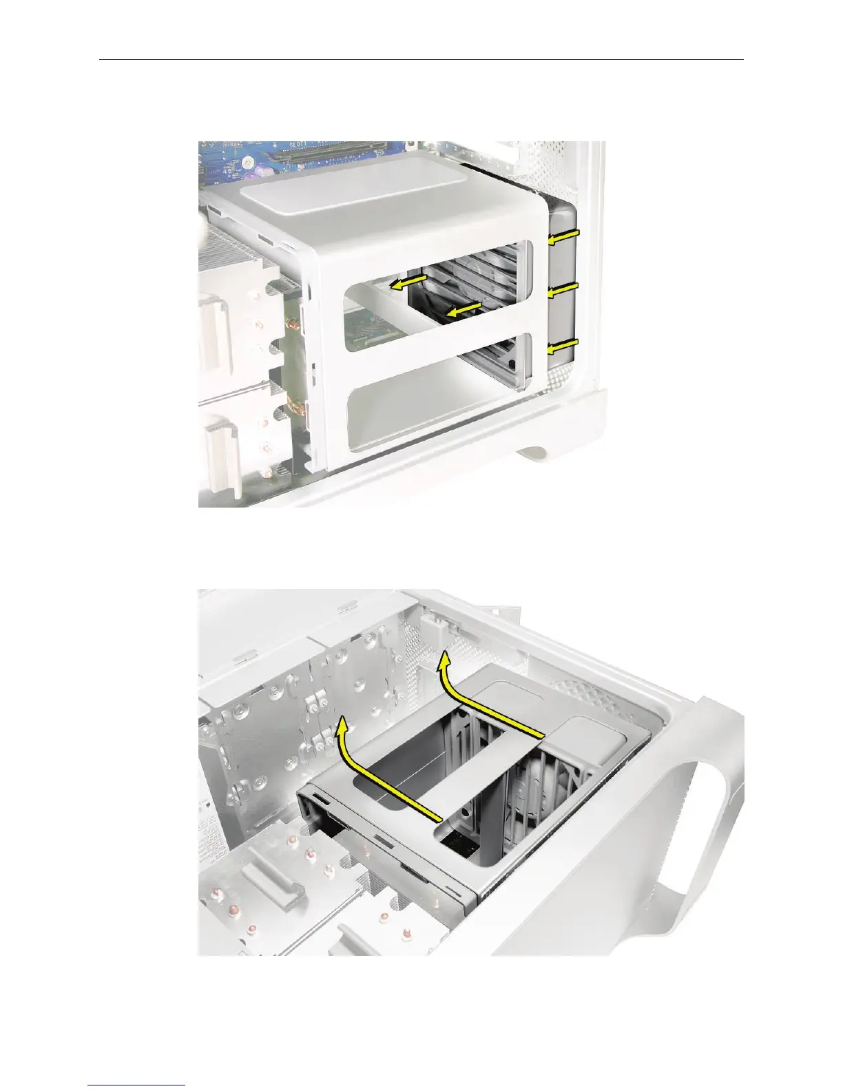 bottom edge of the enclosure. Then lift the memory cage and fan out of the enclosure.