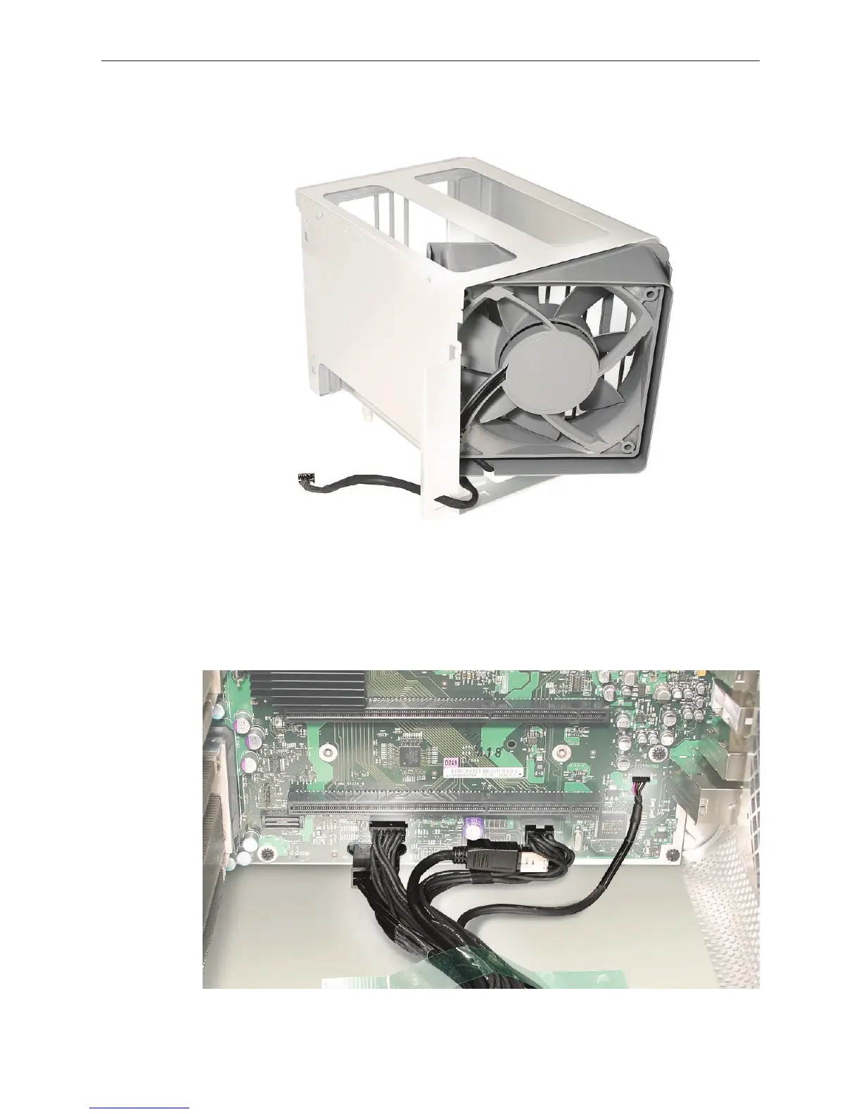 Replacement Note: Before installing the memory cage and fan, make sure all logic board cables