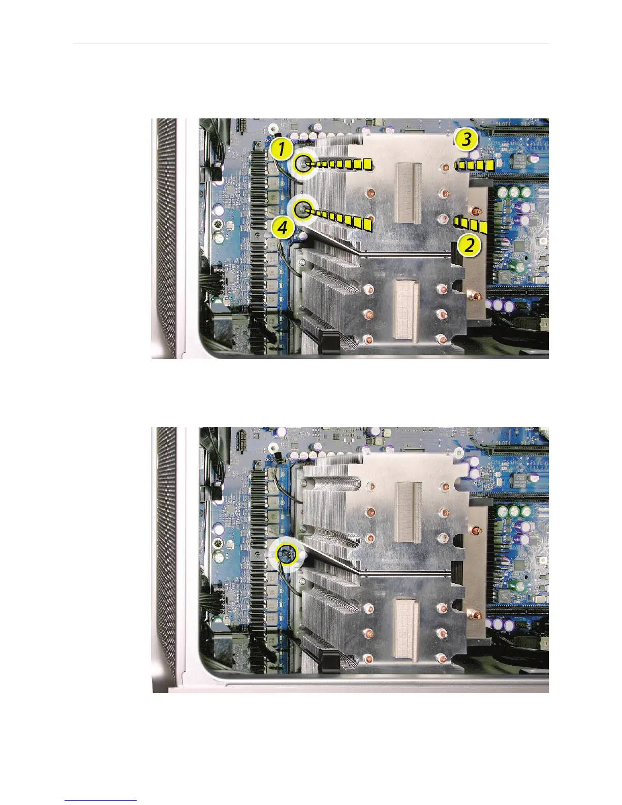 mounting screws for the upper processor heatsink in the order indicated below.