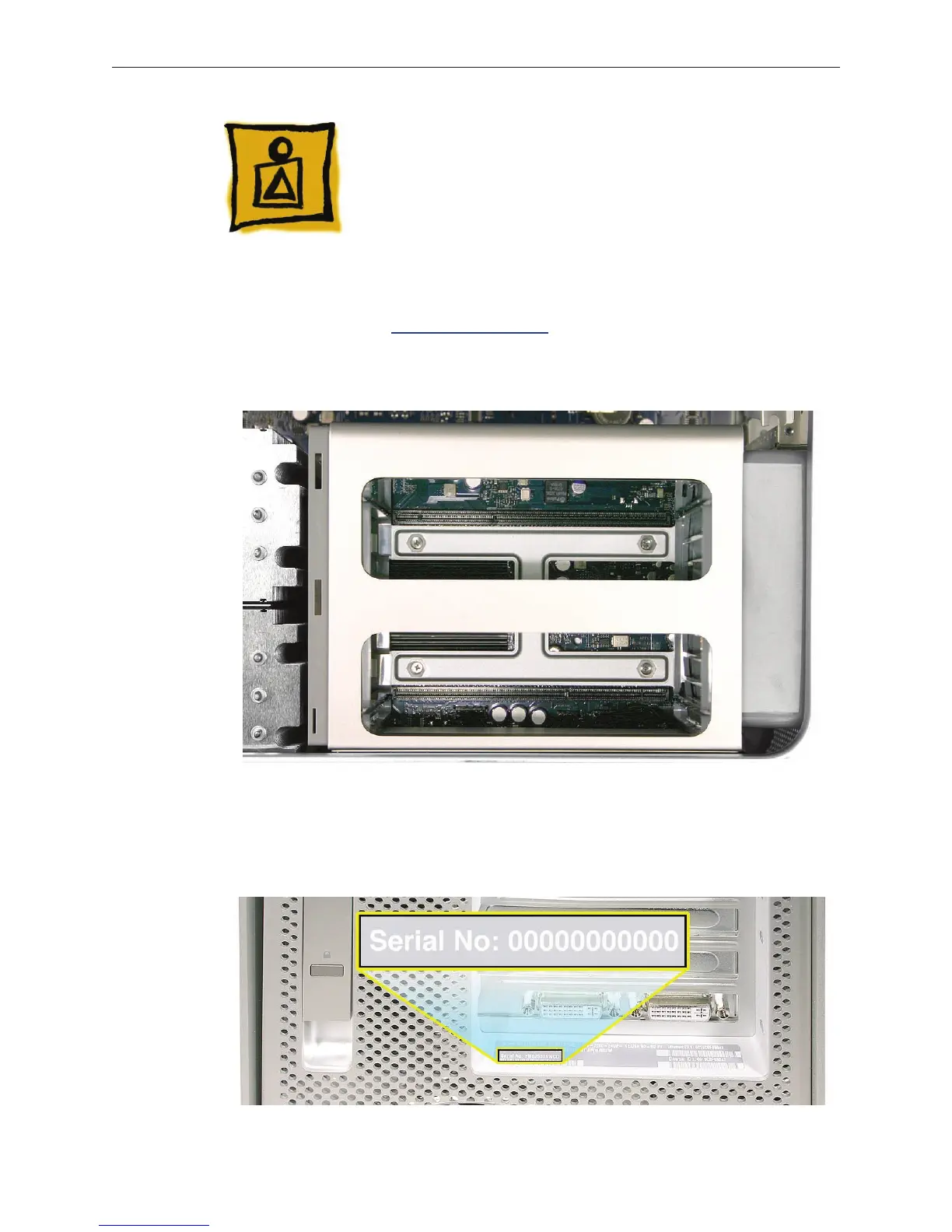 The Mac Pro (Early 2008) serial number is located on the conguration label, directly below the