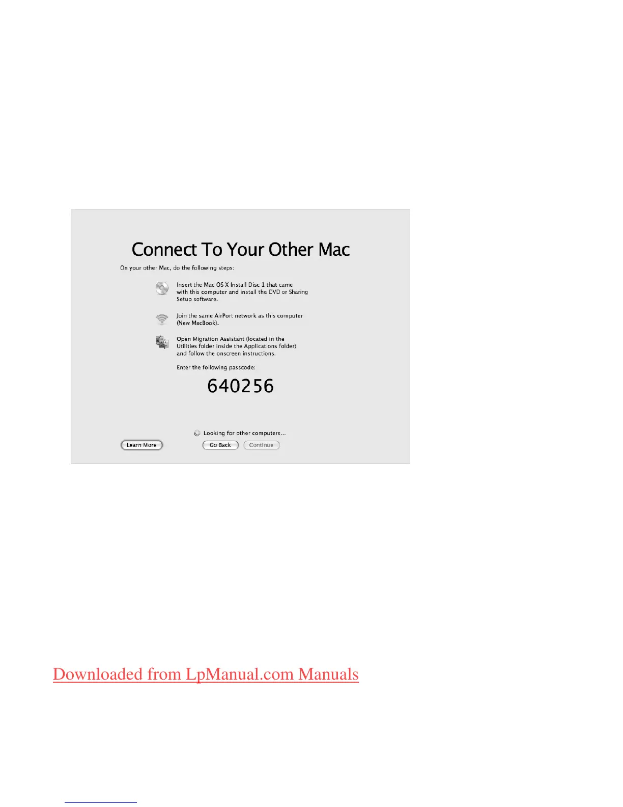 the remaining steps on the other Mac. You will enter the passcode in Migration