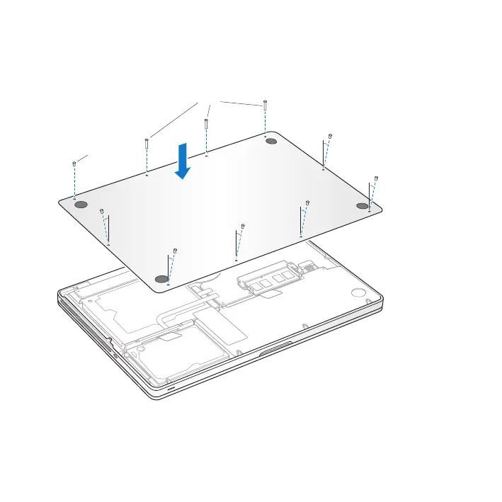 10 Replacethebottomcase.Replaceandtightenthetenscrewsyouremovedinstep2in