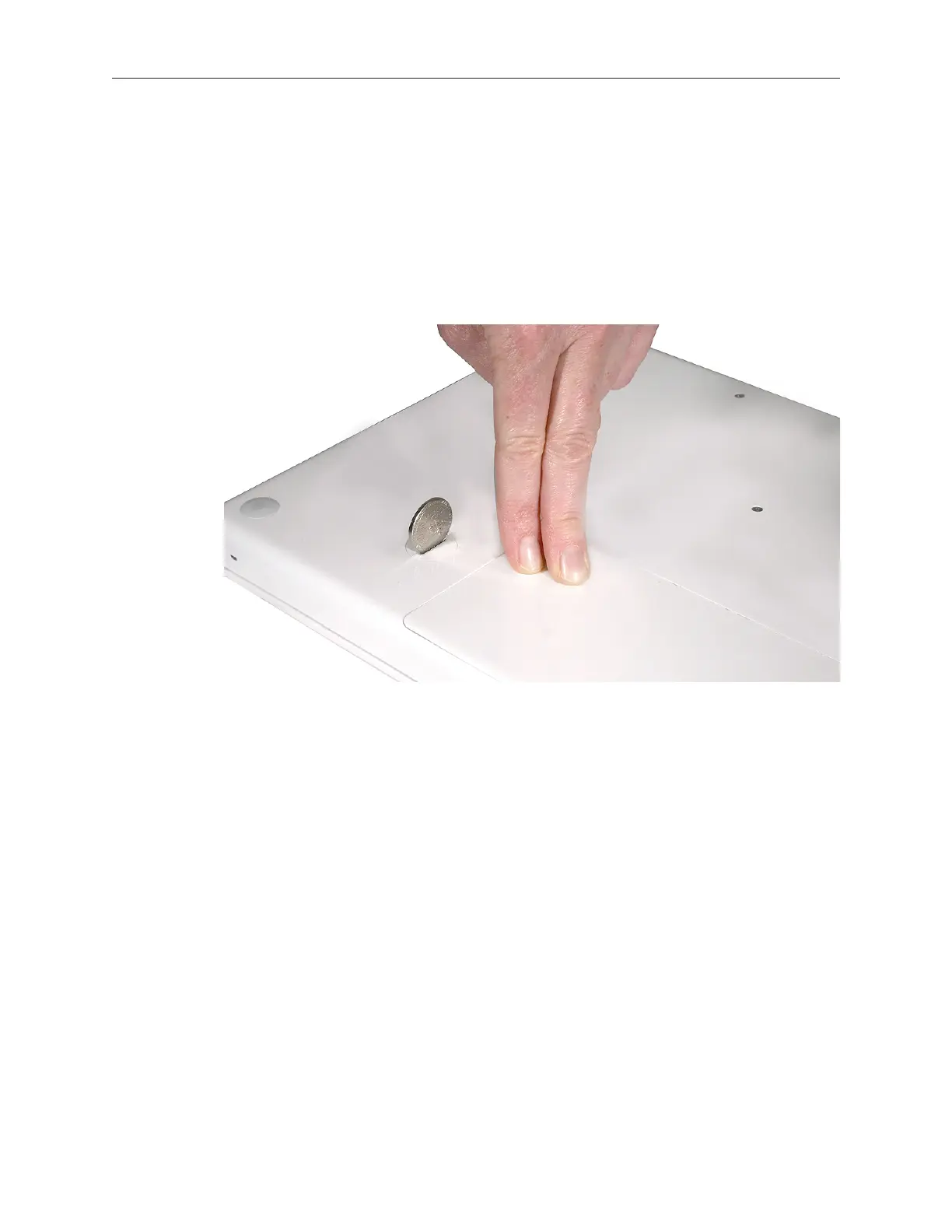 Replace the battery by tilting the foot end of the battery into the battery bay rst. Then press 1.