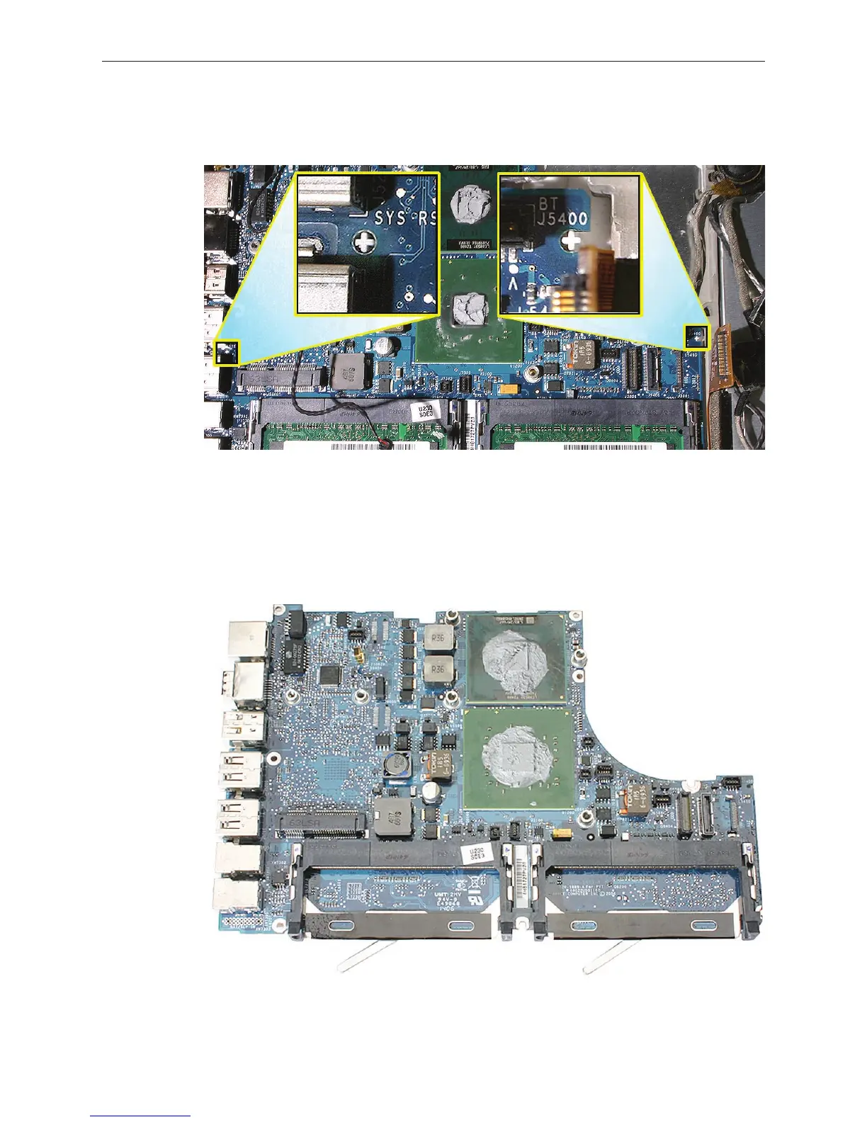 Before installing the logic board, check the locator pins on the bottom case. Make sure the