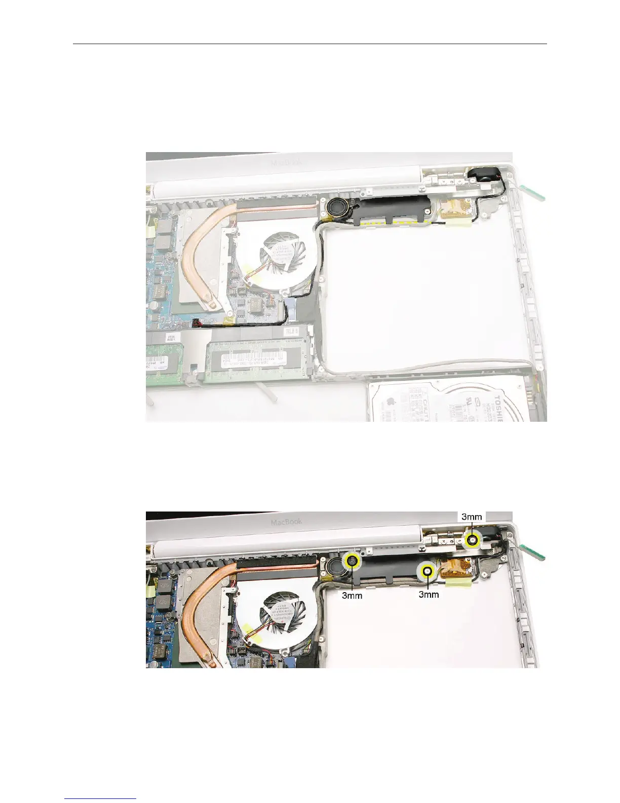 • 3-mm long screw from the right speaker.