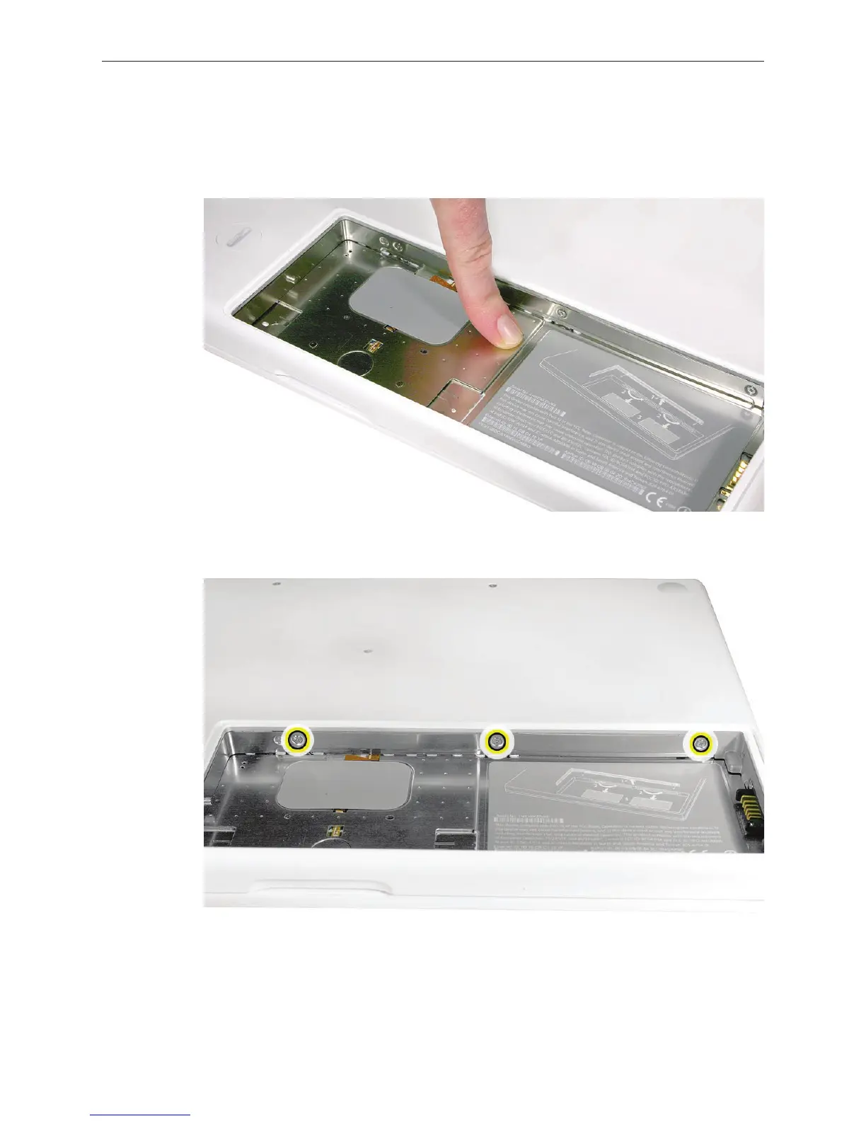 With the computer closed and upside down on a soft cloth, touch a metal surface inside the