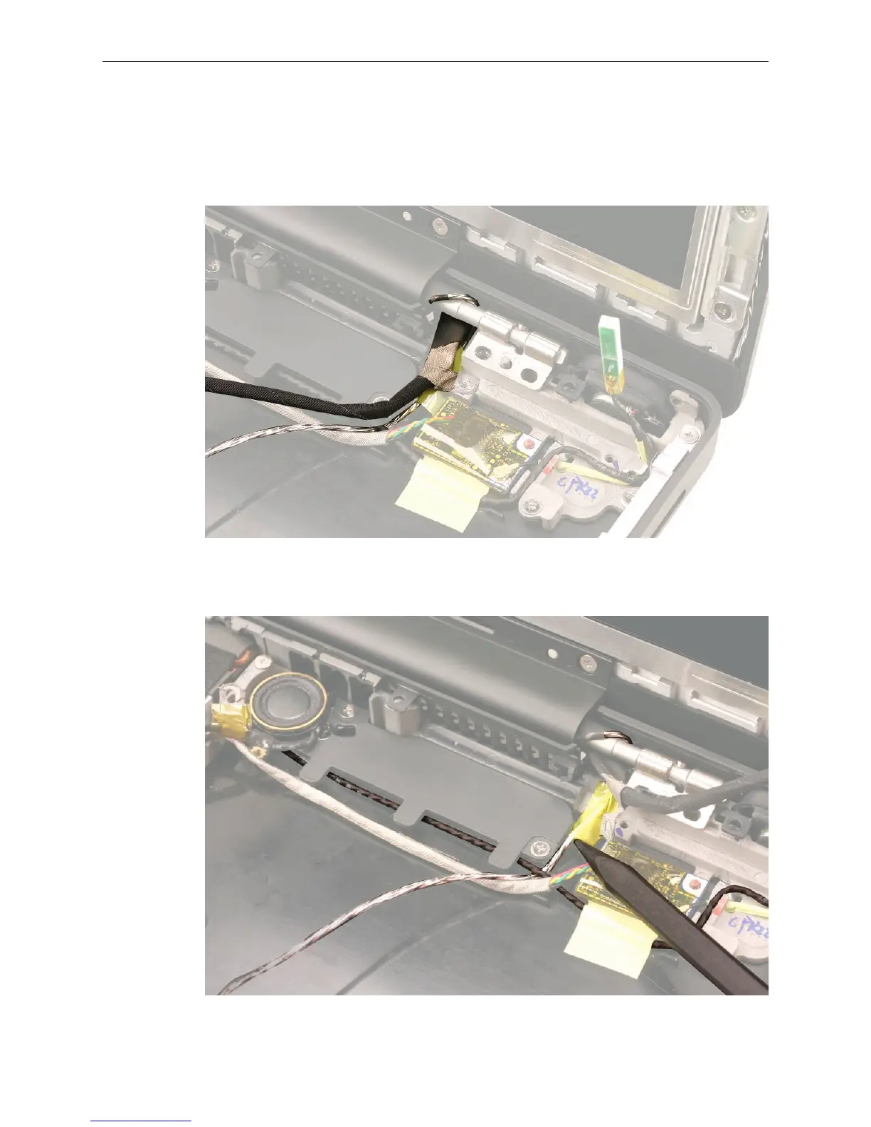 Replacement Note: When installing the display, note how the cables are routed at the right