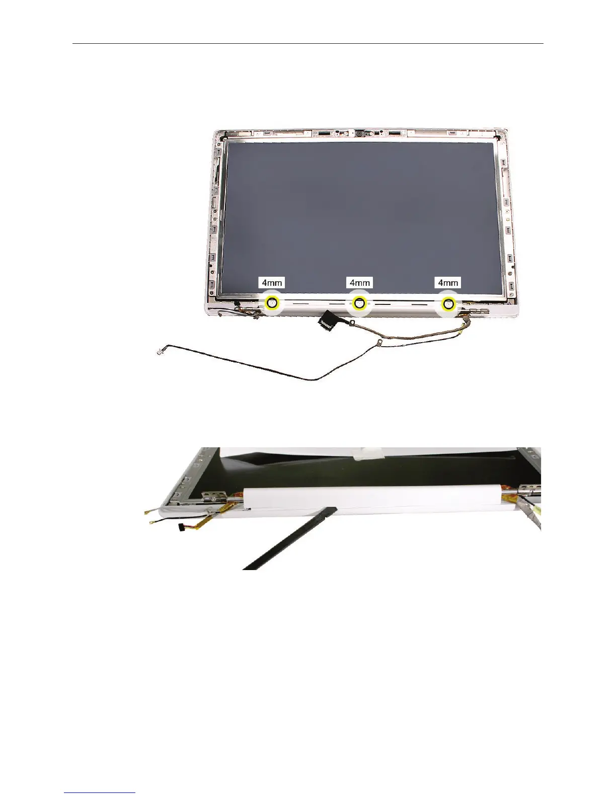 With the display assembly face up, remove the three 4-mm long screws along the top edge