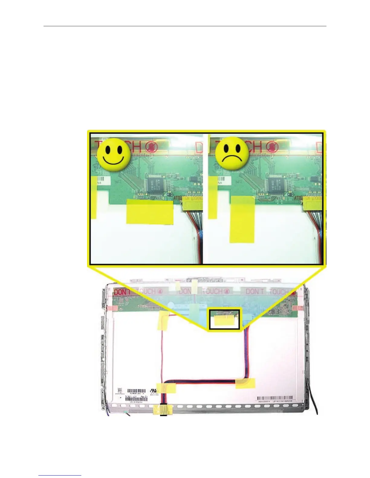 display, check the back of the LCD panel to make sure the tape is placed horizontally, as