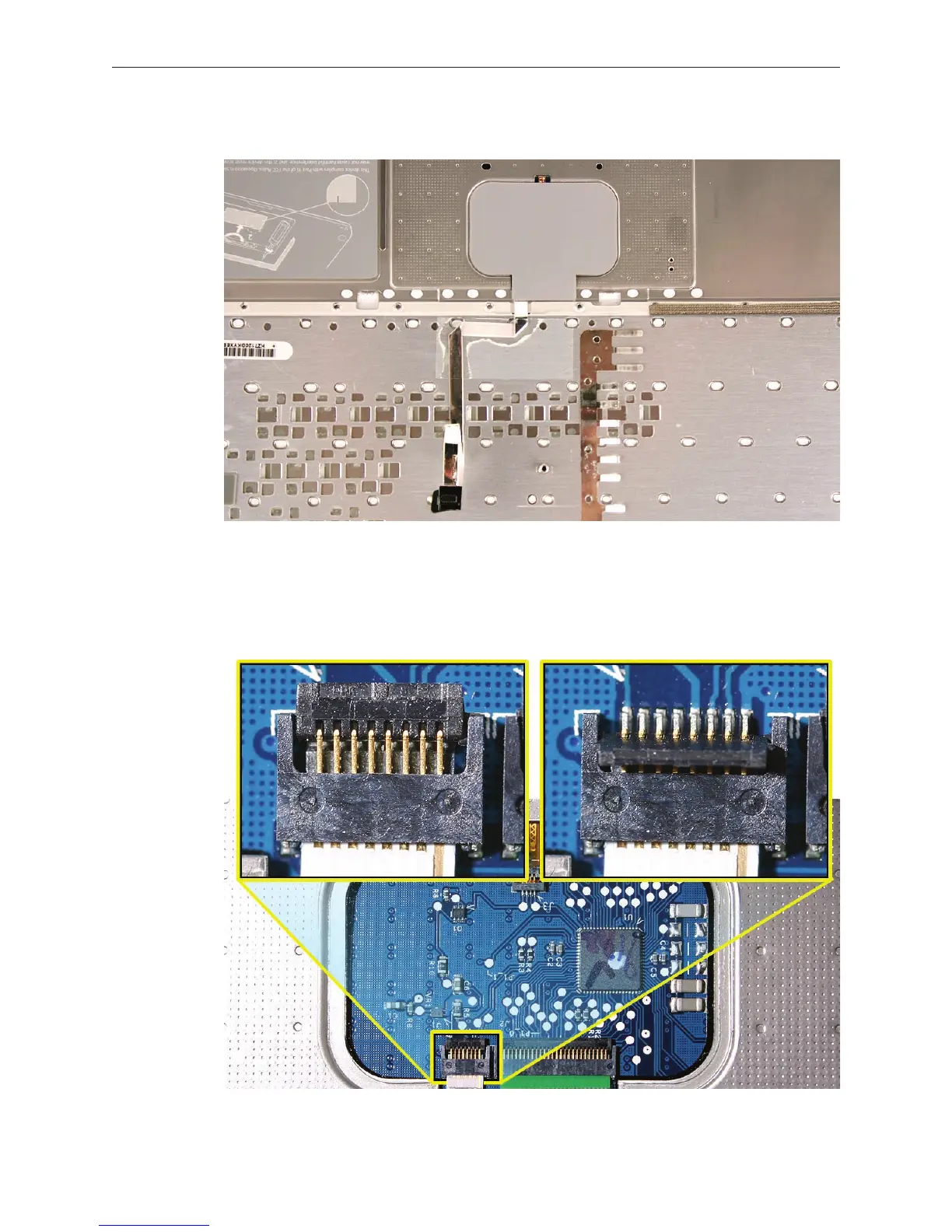 Caution: The trackpad cable locking lever at the top of the connector is fragile. Use a black