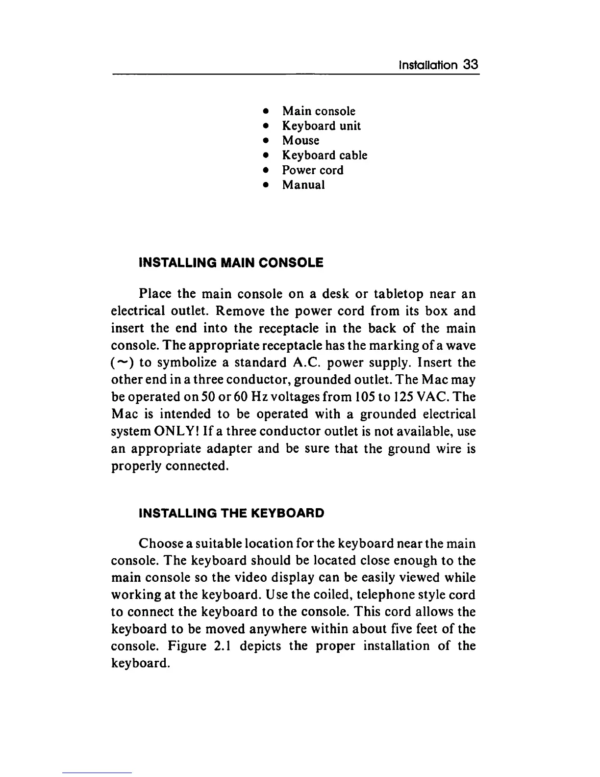 end in a three conductor, grounded outlet. The Mac may