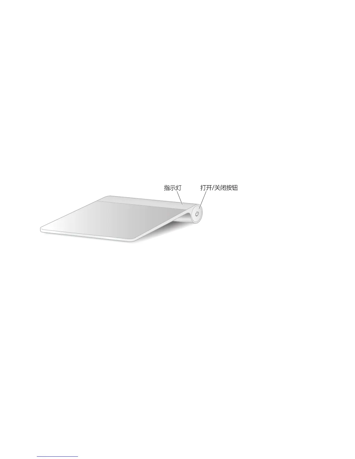 首次给触控板开电时,指示灯会稳定地亮起两到三秒钟,用以表示电池状态良好。