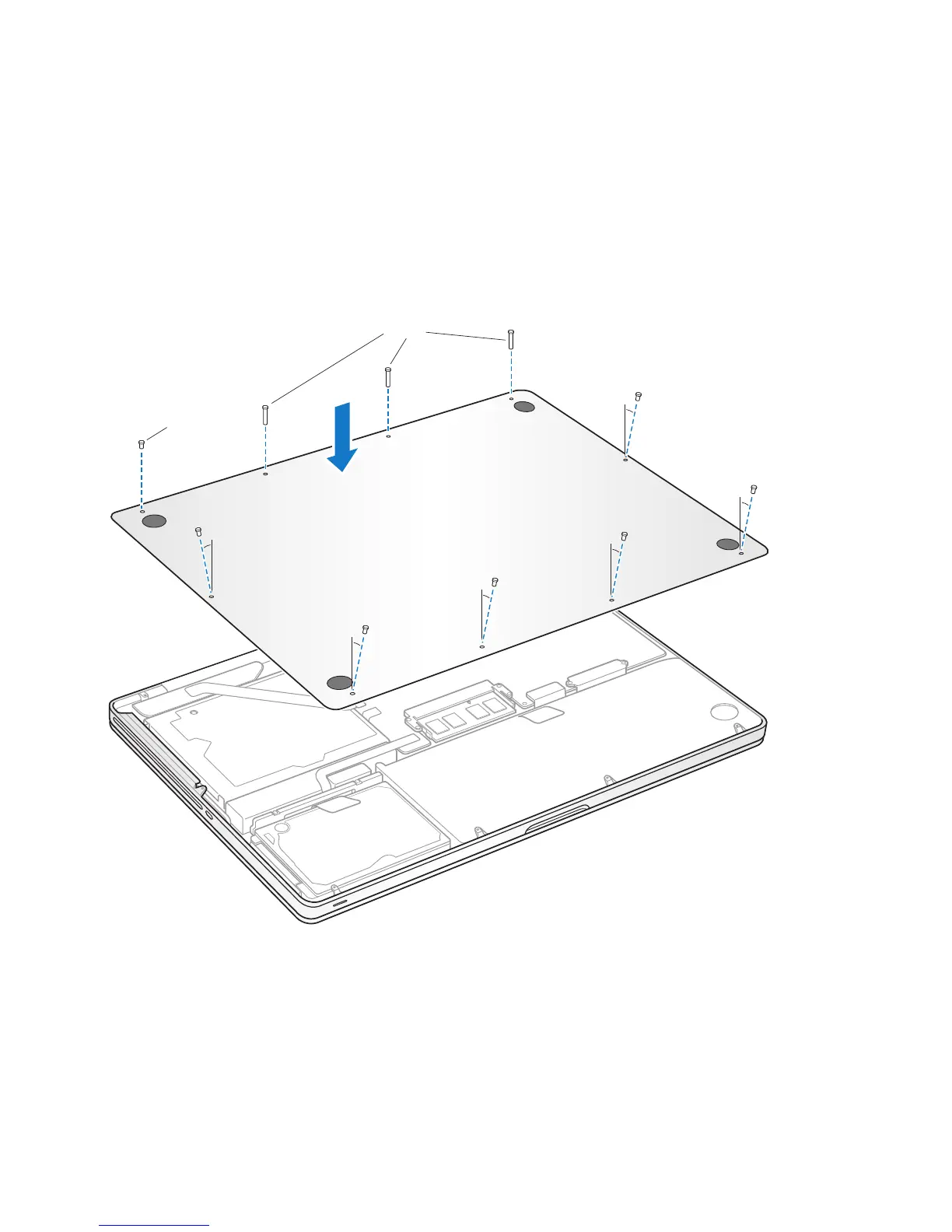 10 Replace the bottom case. Replace and tighten the ten screws you removed in step 2 in