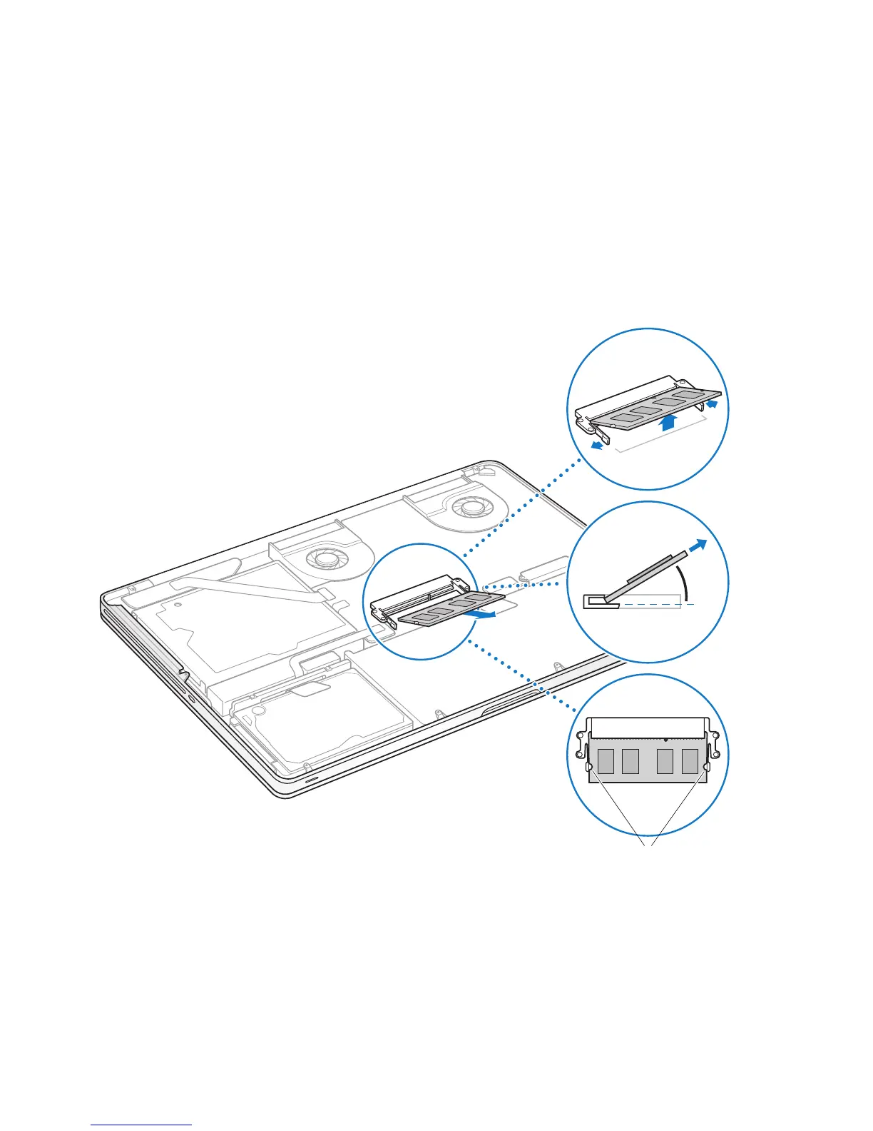 2 Push the levers on the sides of the memory module in an outward direction to release