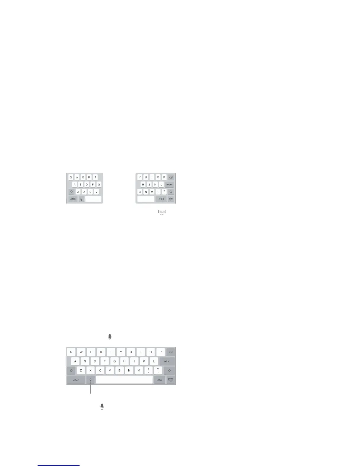 Dictate text. Tap on the iPad keyboard, then speak. When you nish, tap Done.