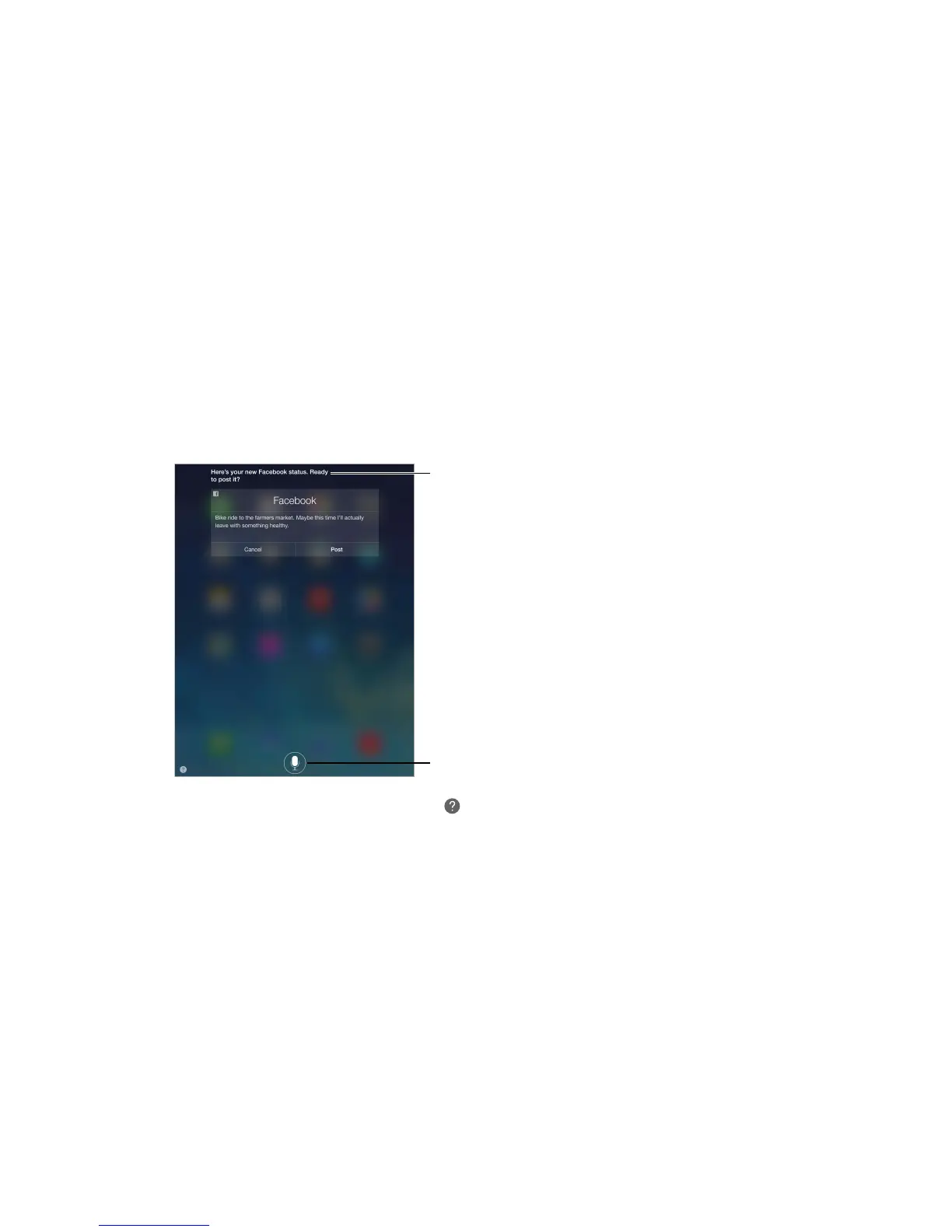 Note: To use Siri, iPad must be connected to the Internet. See Connect to Wi-Fi on page 13.
