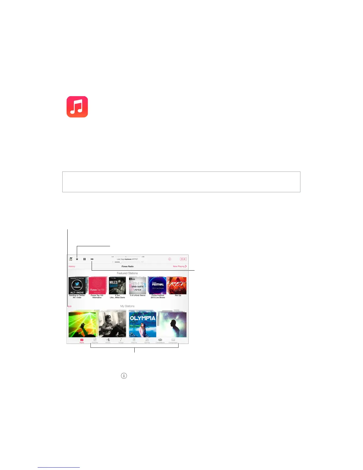 Note: iTunes Radio may not be available in all areas. For more information about iTunes Radio,