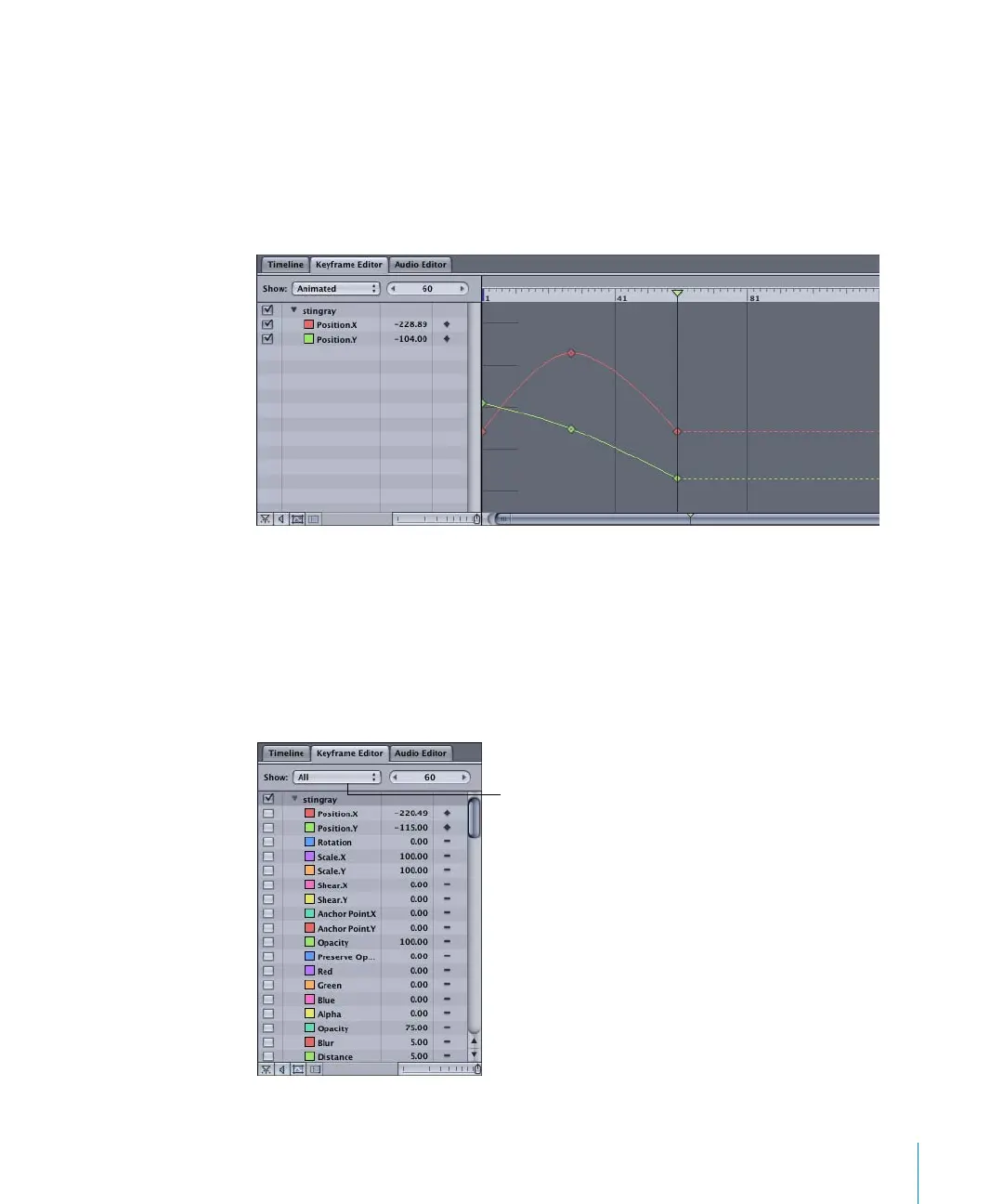 displayed in the Keyframe Editor. In the parameter list, only the Position parameters